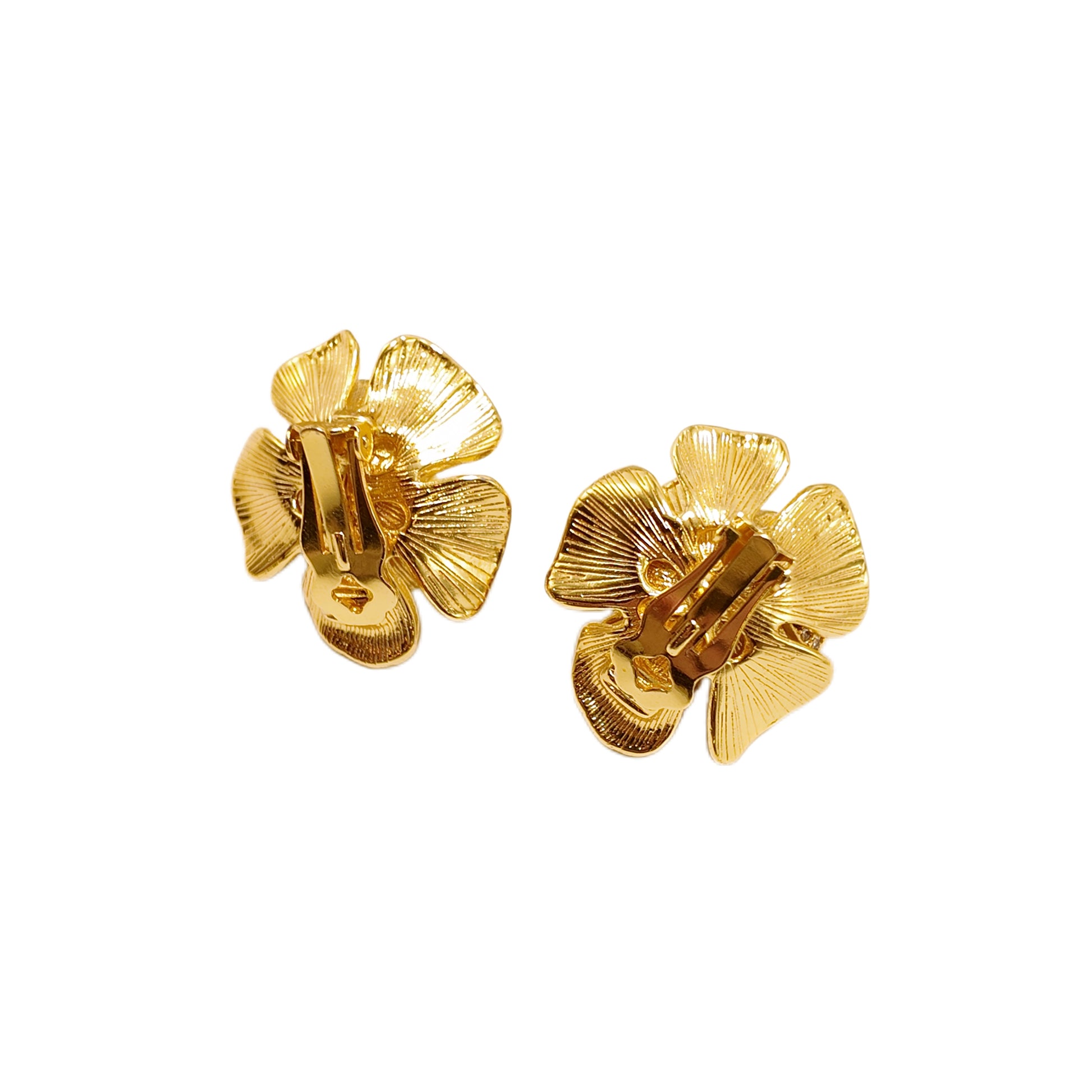 • Design: Small-sized clip-on earrings (suitable for non-pierced ears). Layers of camellia petals with slightly curled edges, resembling bloom; pearls are embedded in the flower’s center and at the tips of petals. The collision of gold plating and pearls exudes the 1990s French elegance of "softness with subtle sharpness," carrying an inherent retro romantic delicacy.
