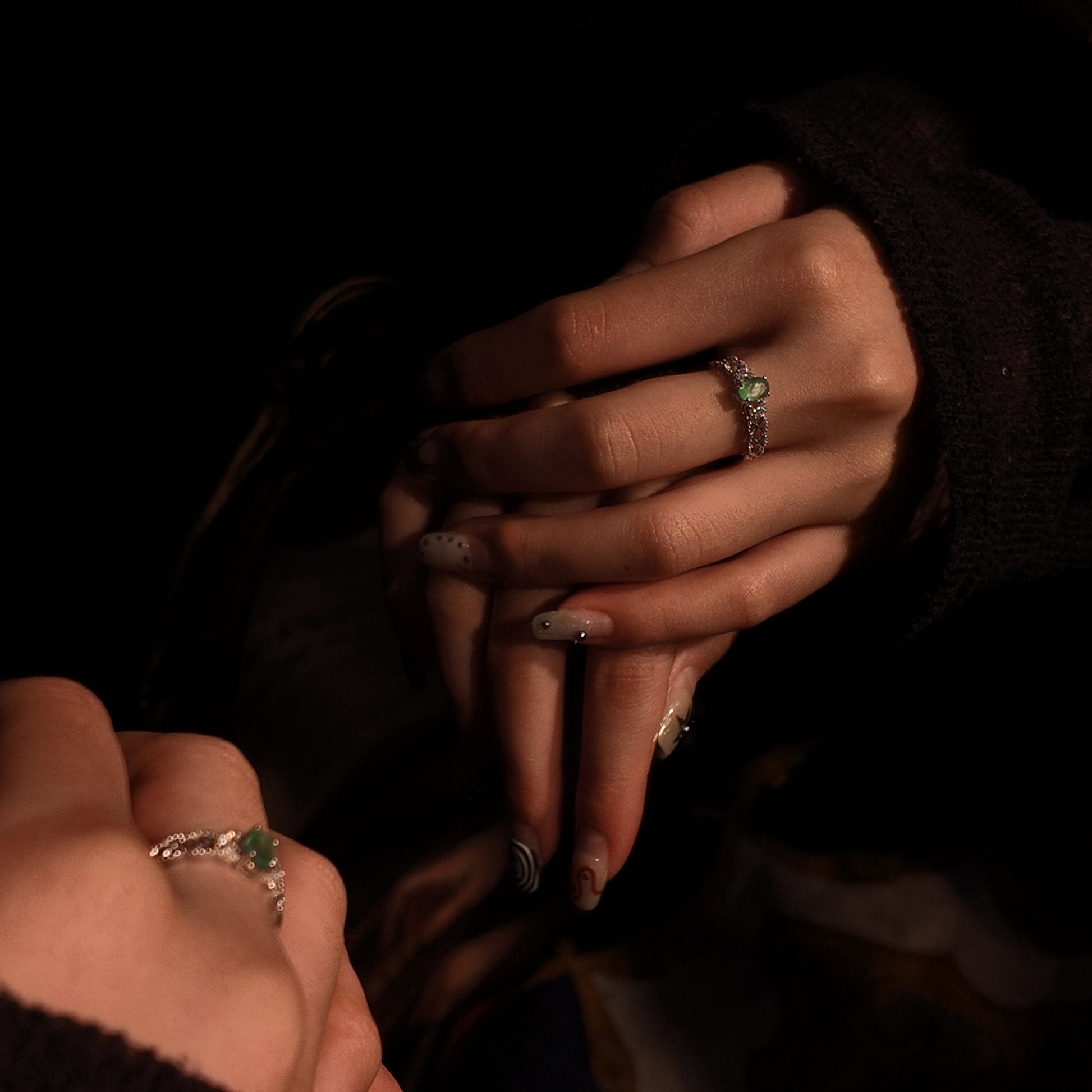 Emeralds Open Ring S925 Solid Silver Oval Exquisite and Compact Daily Inlay Palace Retro