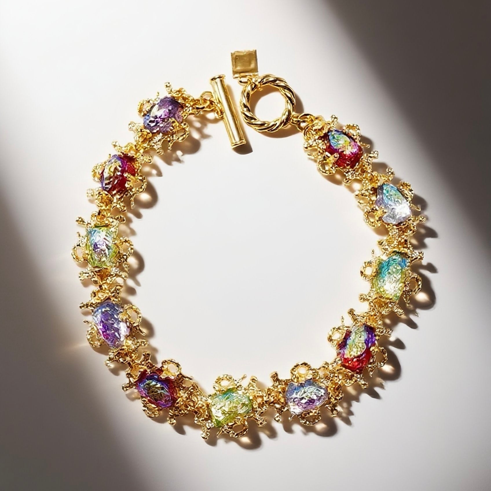 Gavilane Retro King Red, Blue, and Green Three Color Necklace Splicing Glass Aurora Lava Palace Retro