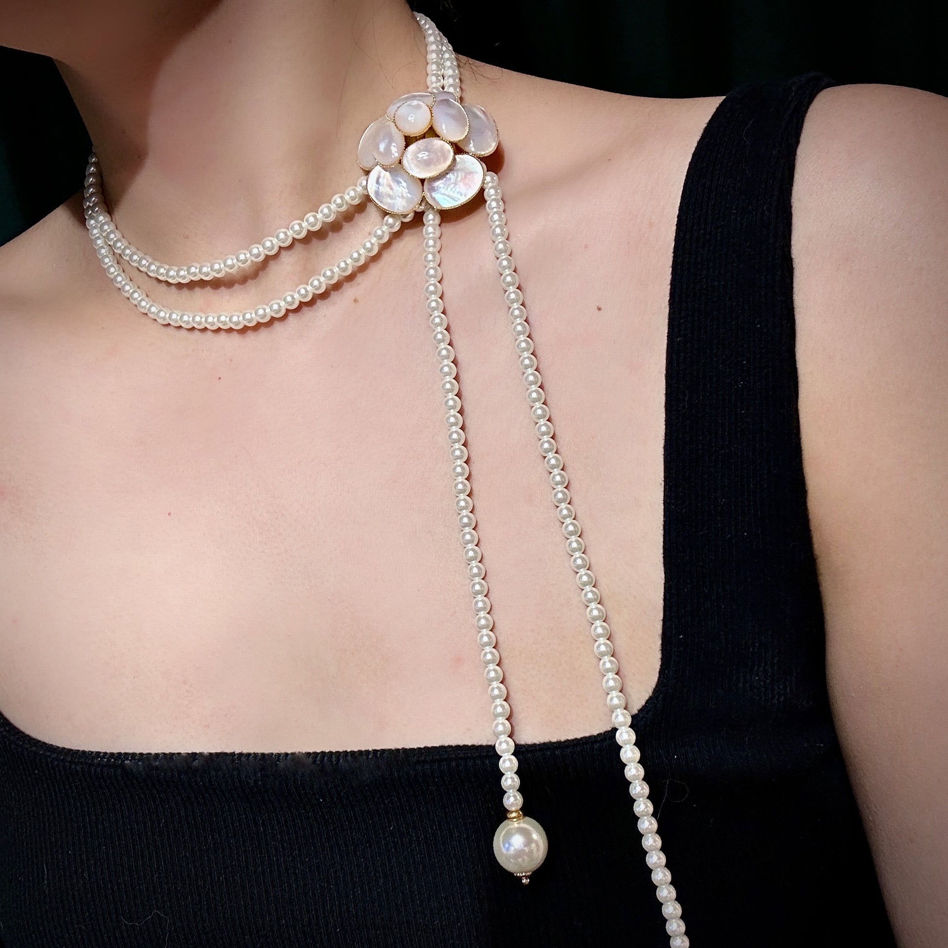 Long imitation pearl necklace with multiple layers and multiple ways of wearing retro and fashionable