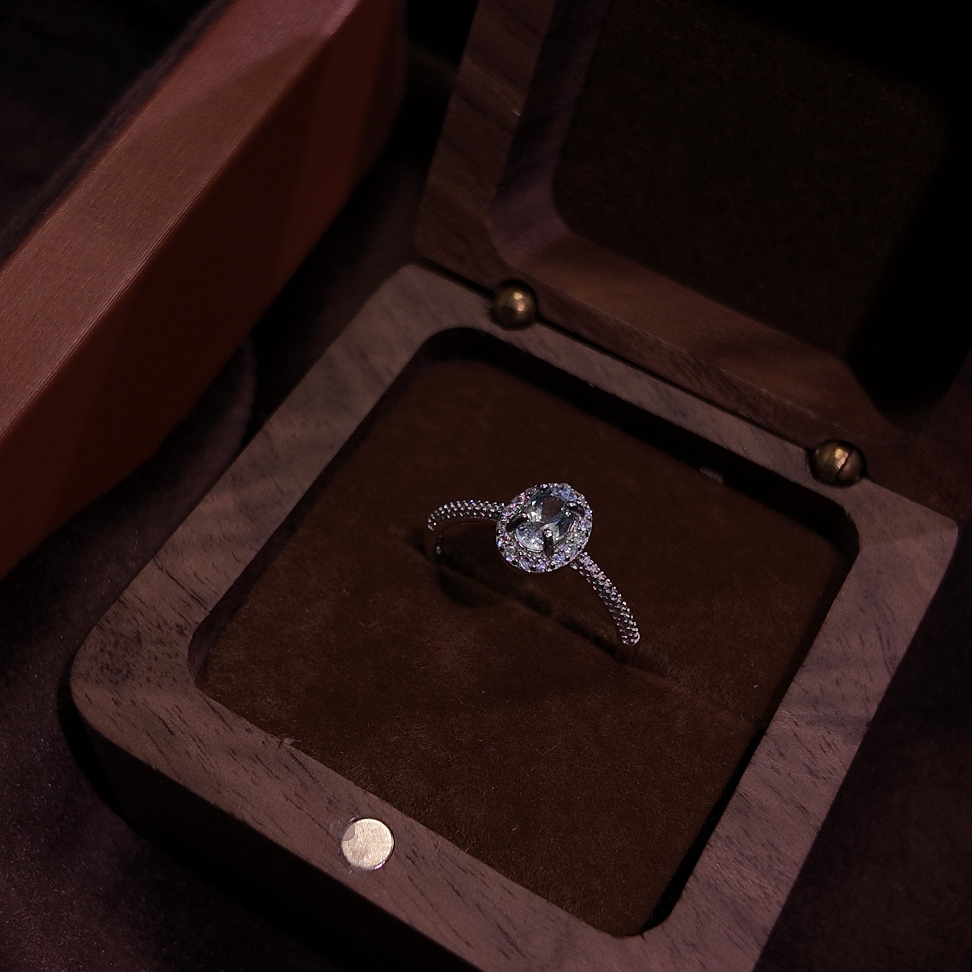 Natural aquamarine gemstone open ring S925 pure silver blue niche exquisite small retro