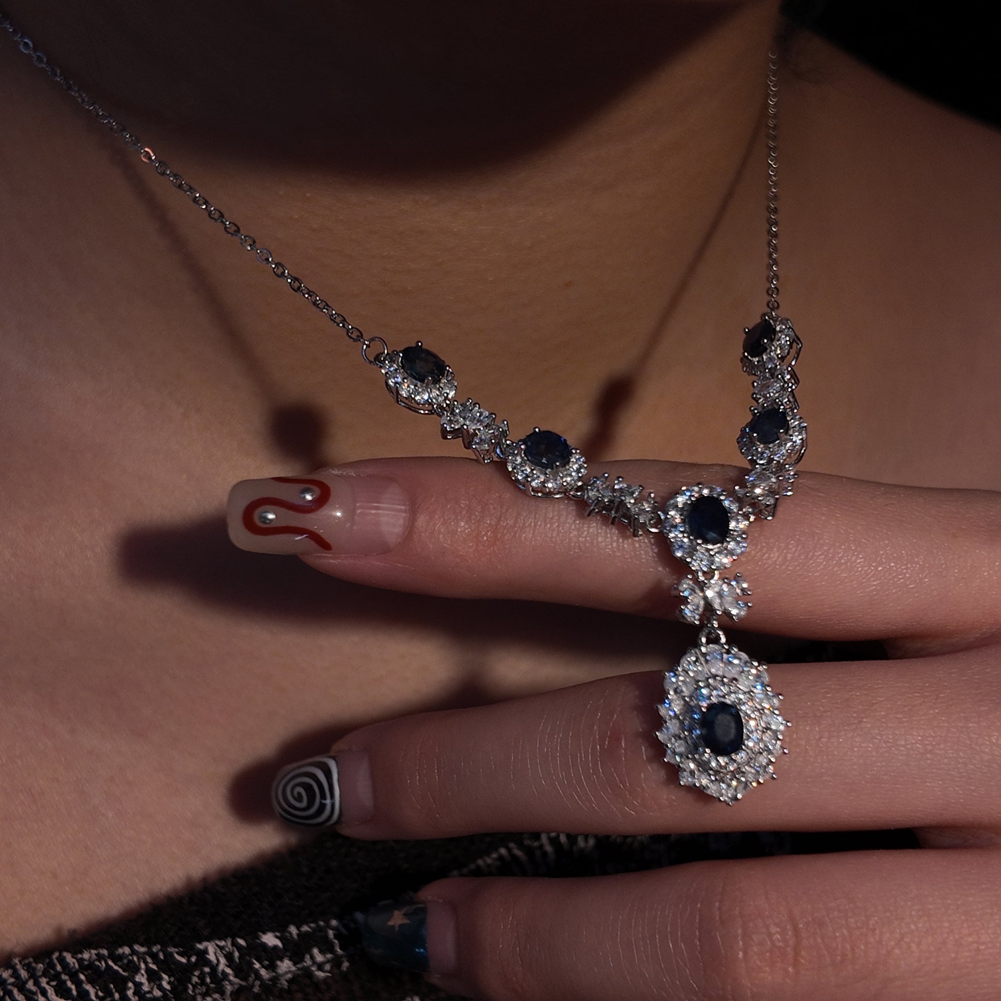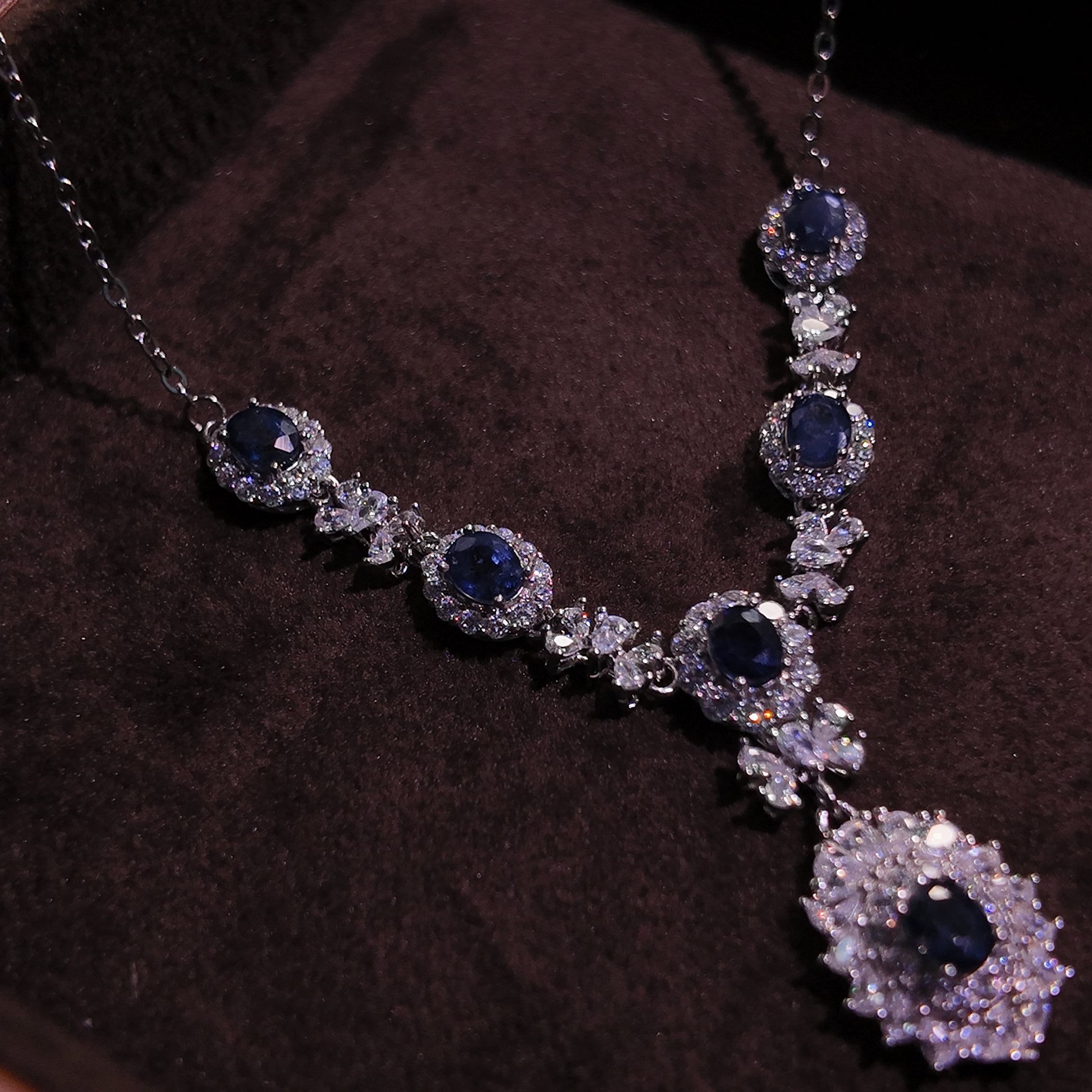 Natural aquamarine necklace S925 pure silver blue V-shaped luxurious palace retro