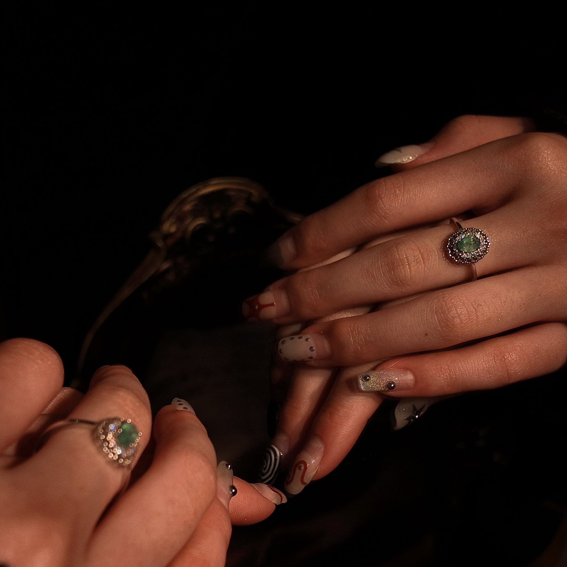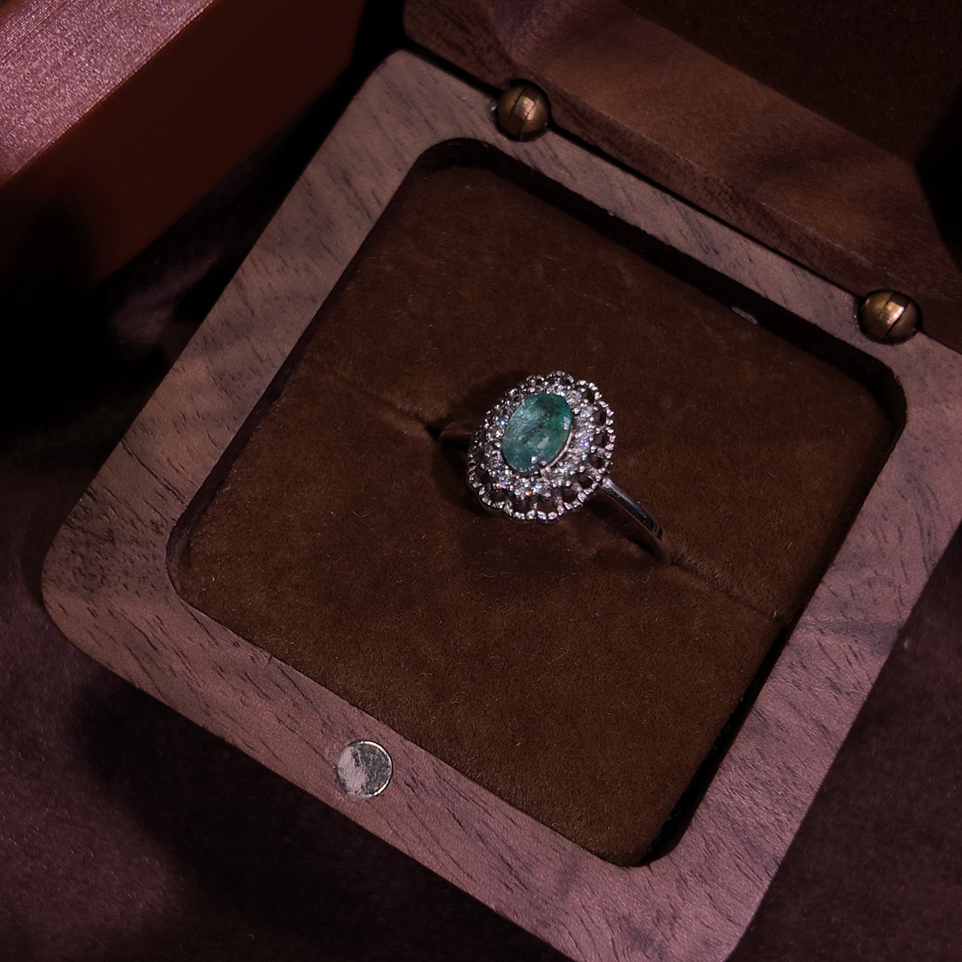 Natural emerald open ring S925 pure silver hollow lace niche exquisite retro