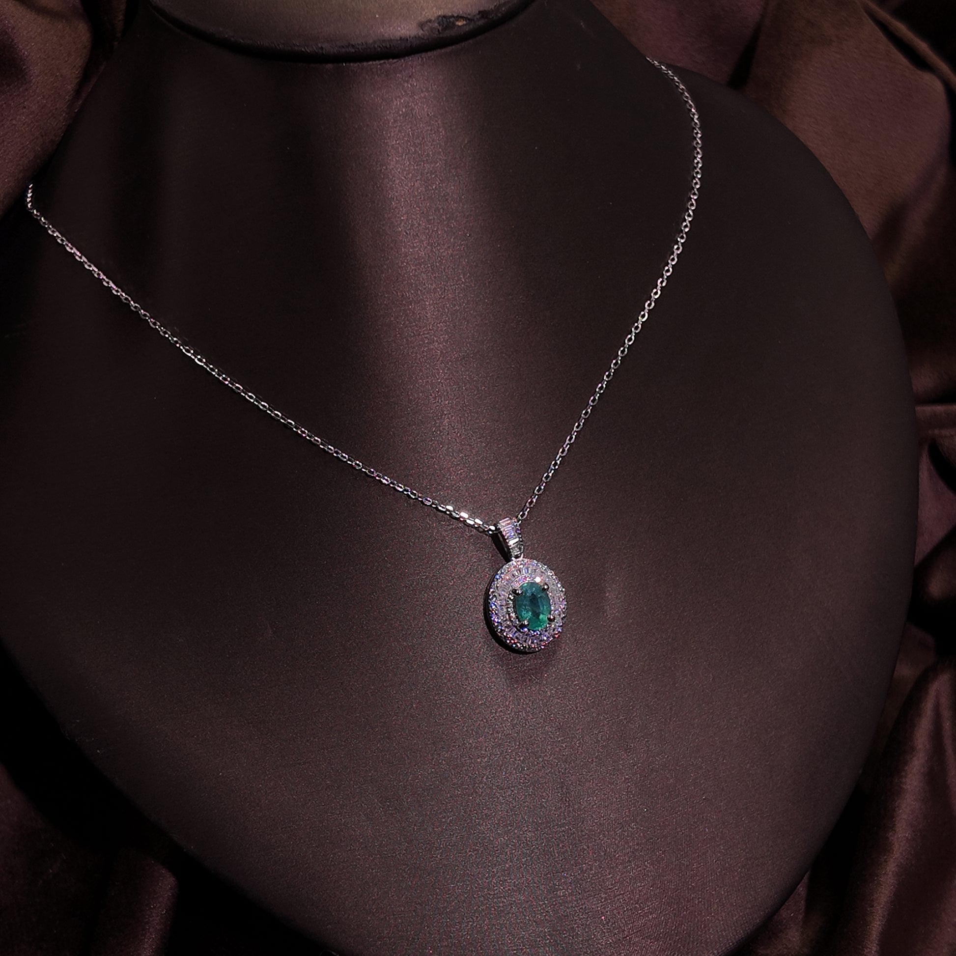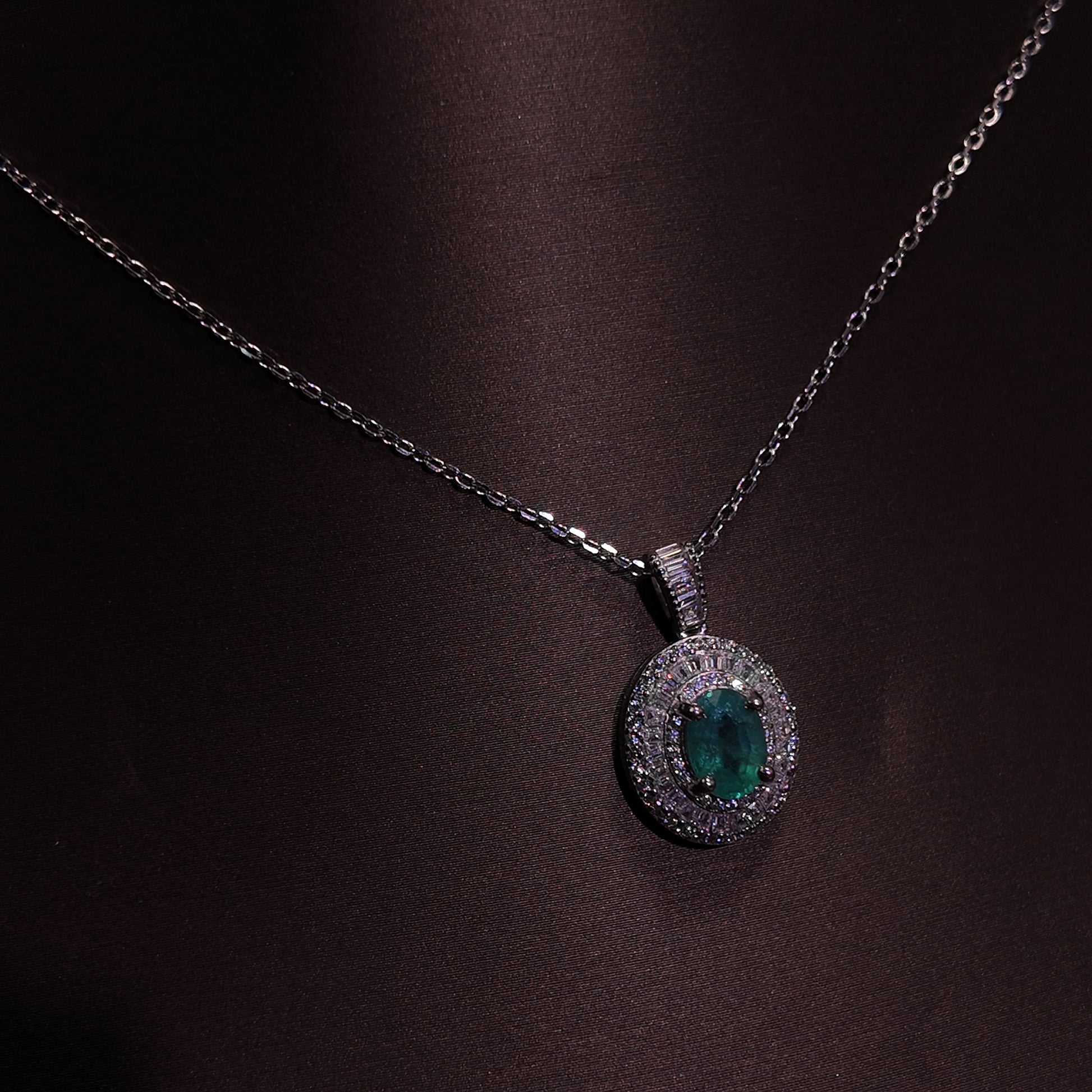 Natural emerald pendant necklace S925 pure silver oval luxury niche exquisite retro