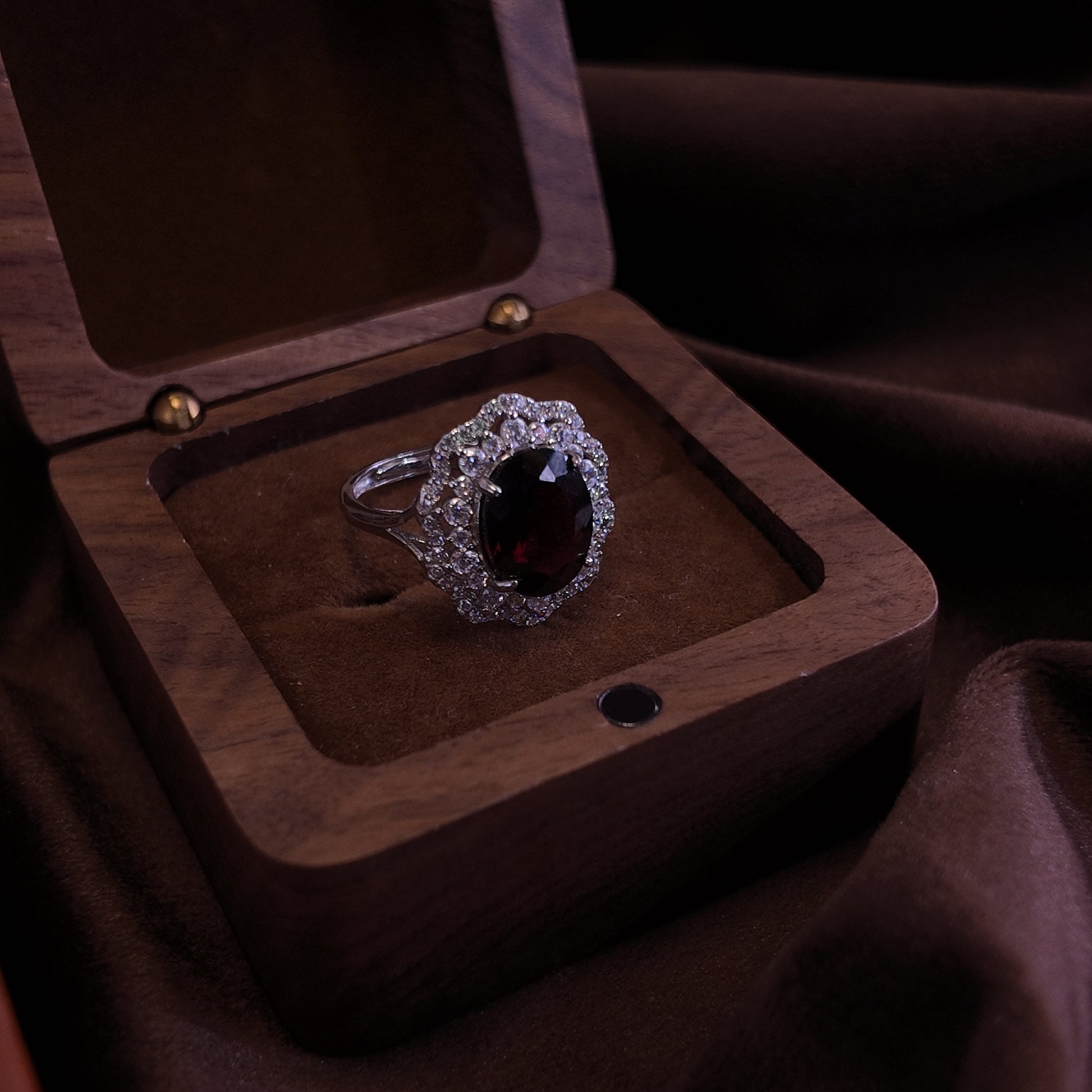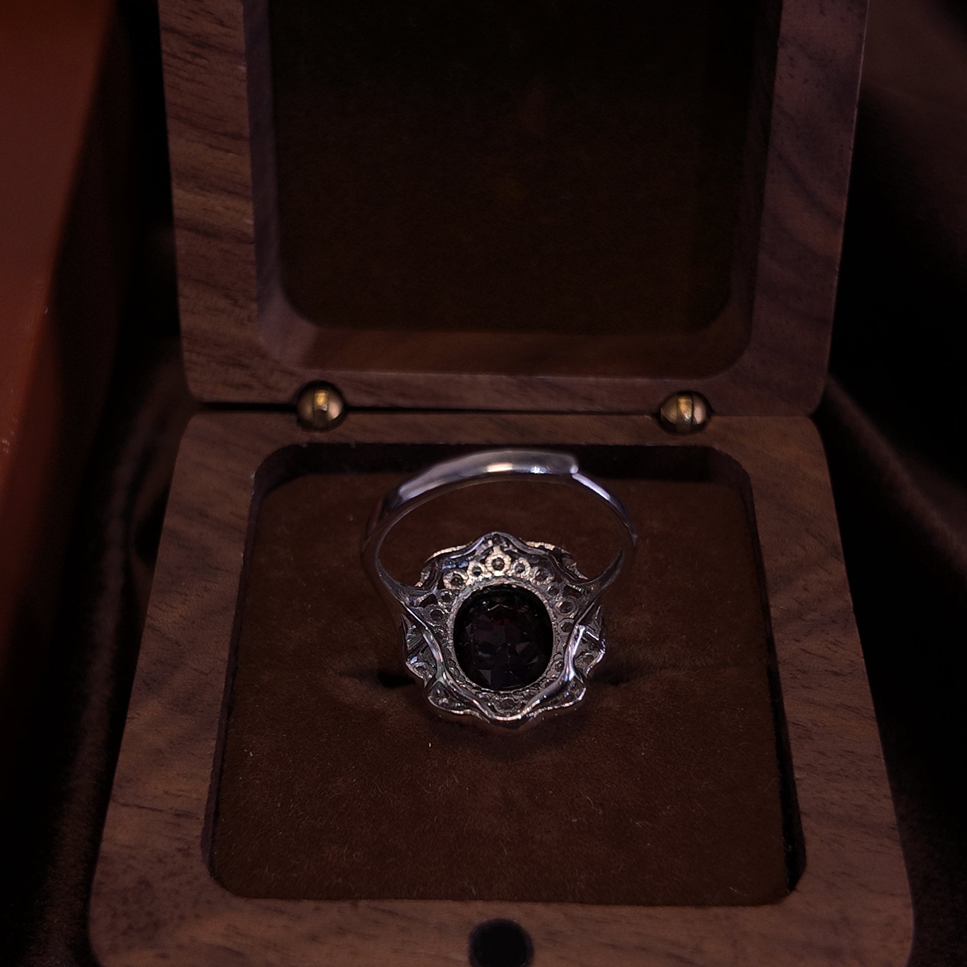 Natural Garnet Open Ring S925 Pure Silver Dark Red Oval Lace Lace Surrounding the Palace Vintage