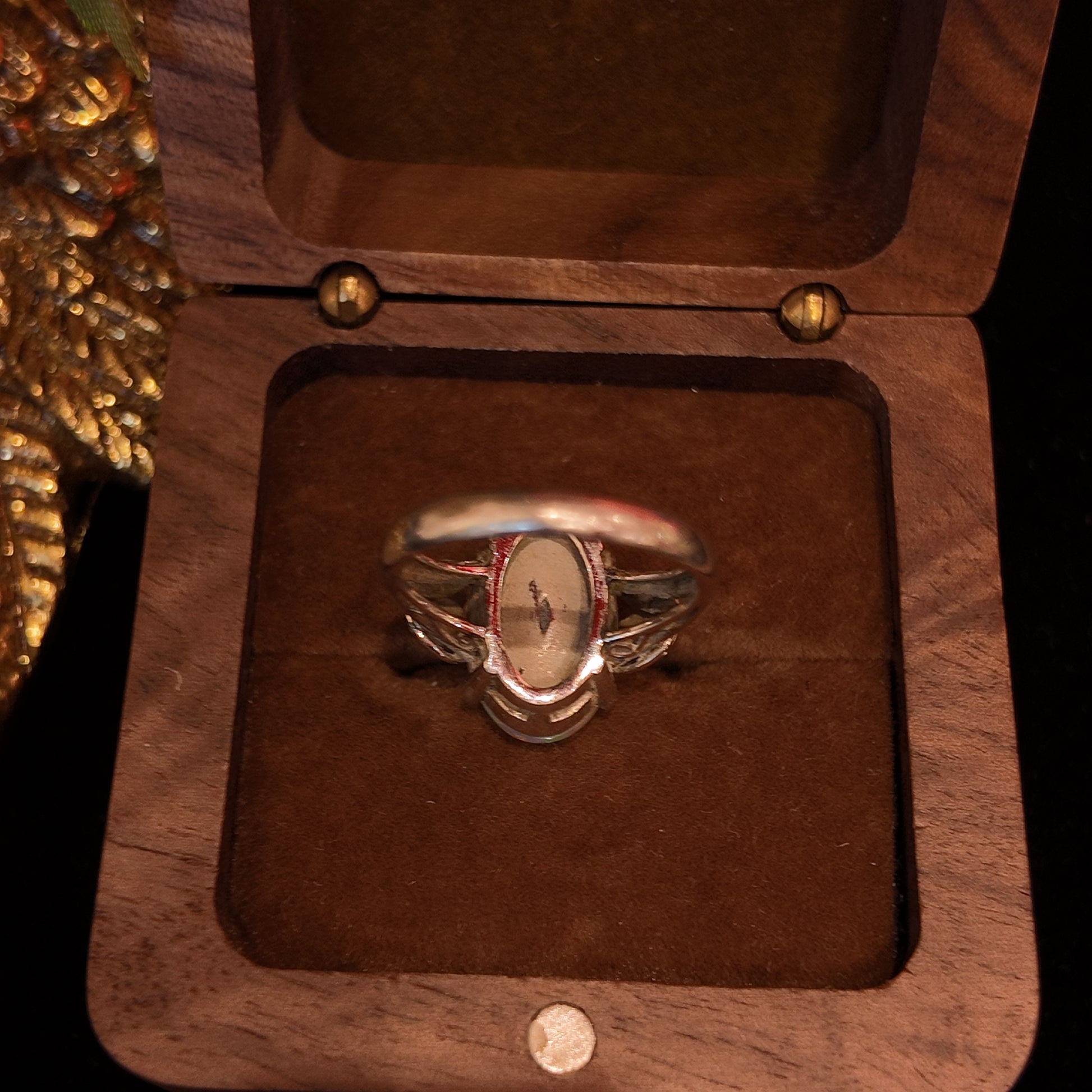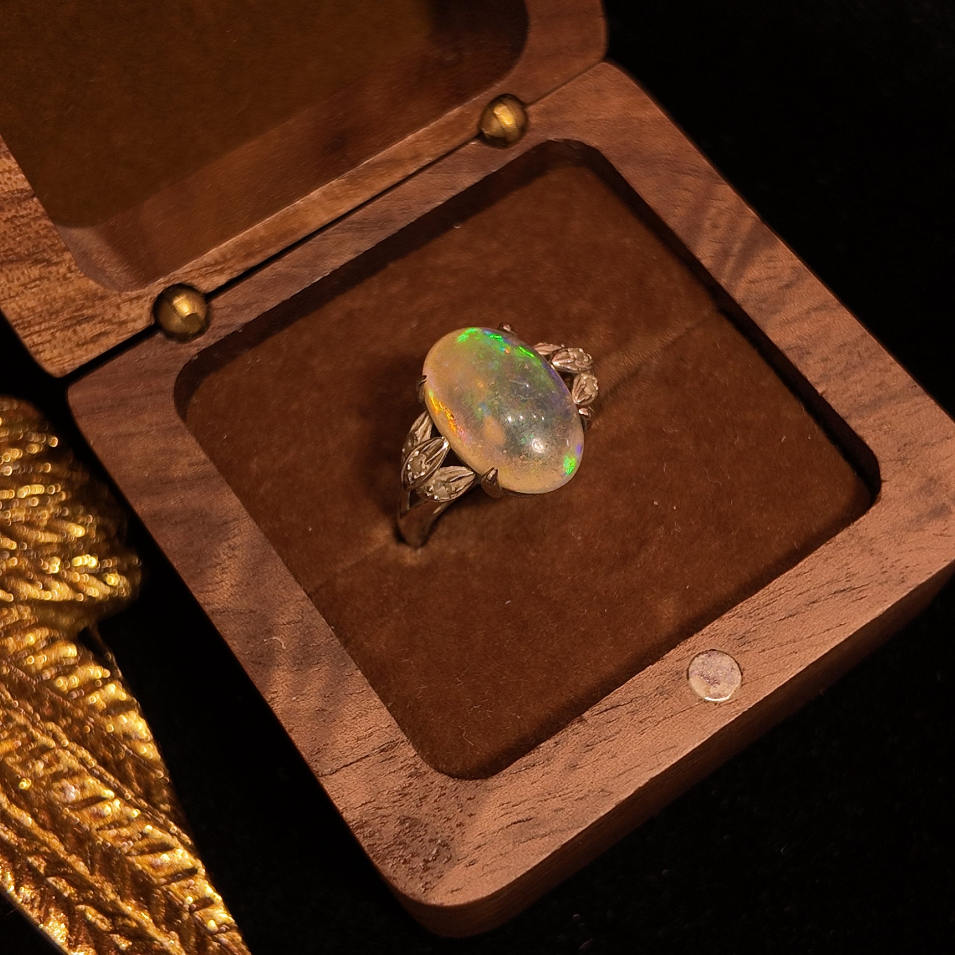Natural Opal Ring 18K Silver Rhinestone with Three Dimensional Patterns Palace Vintage