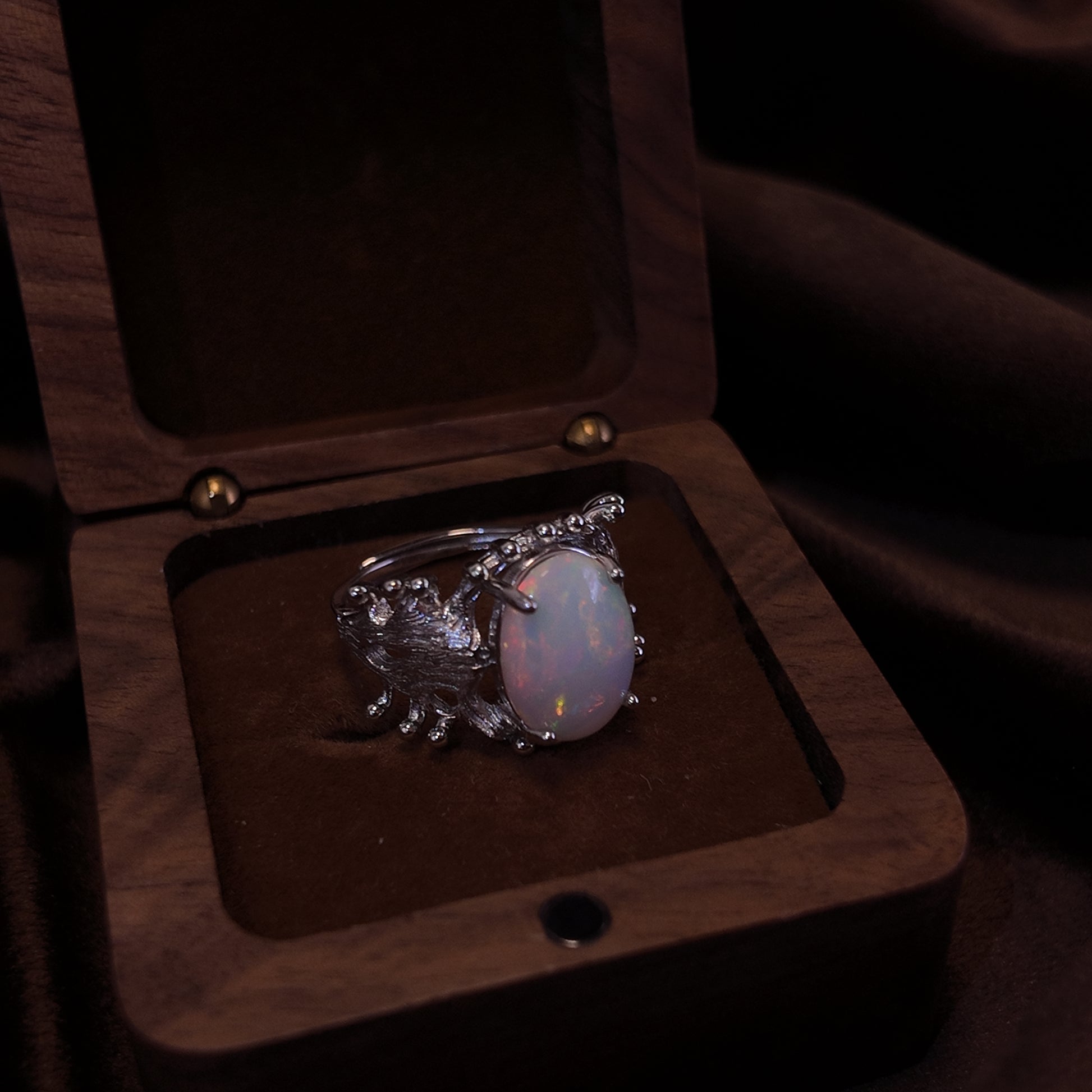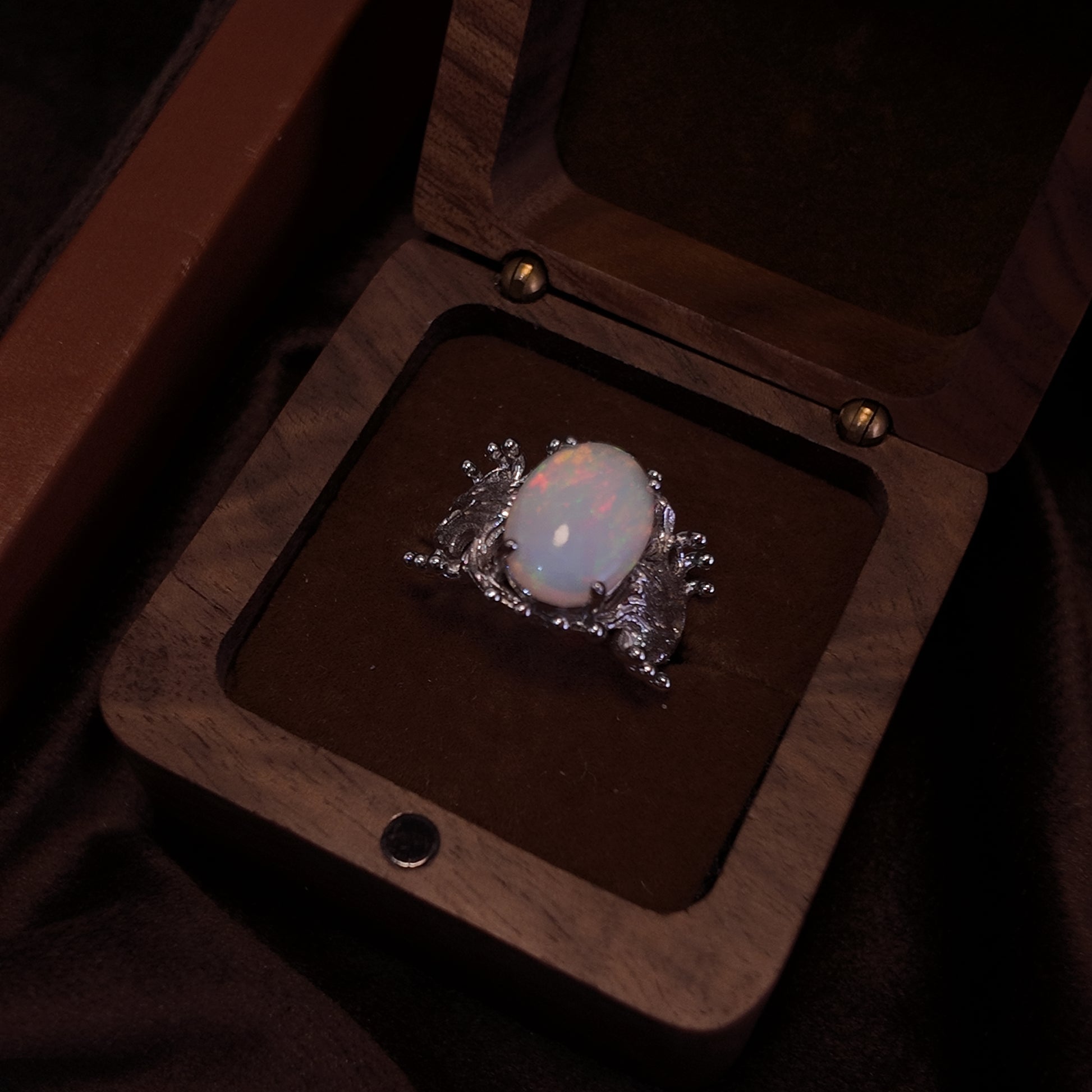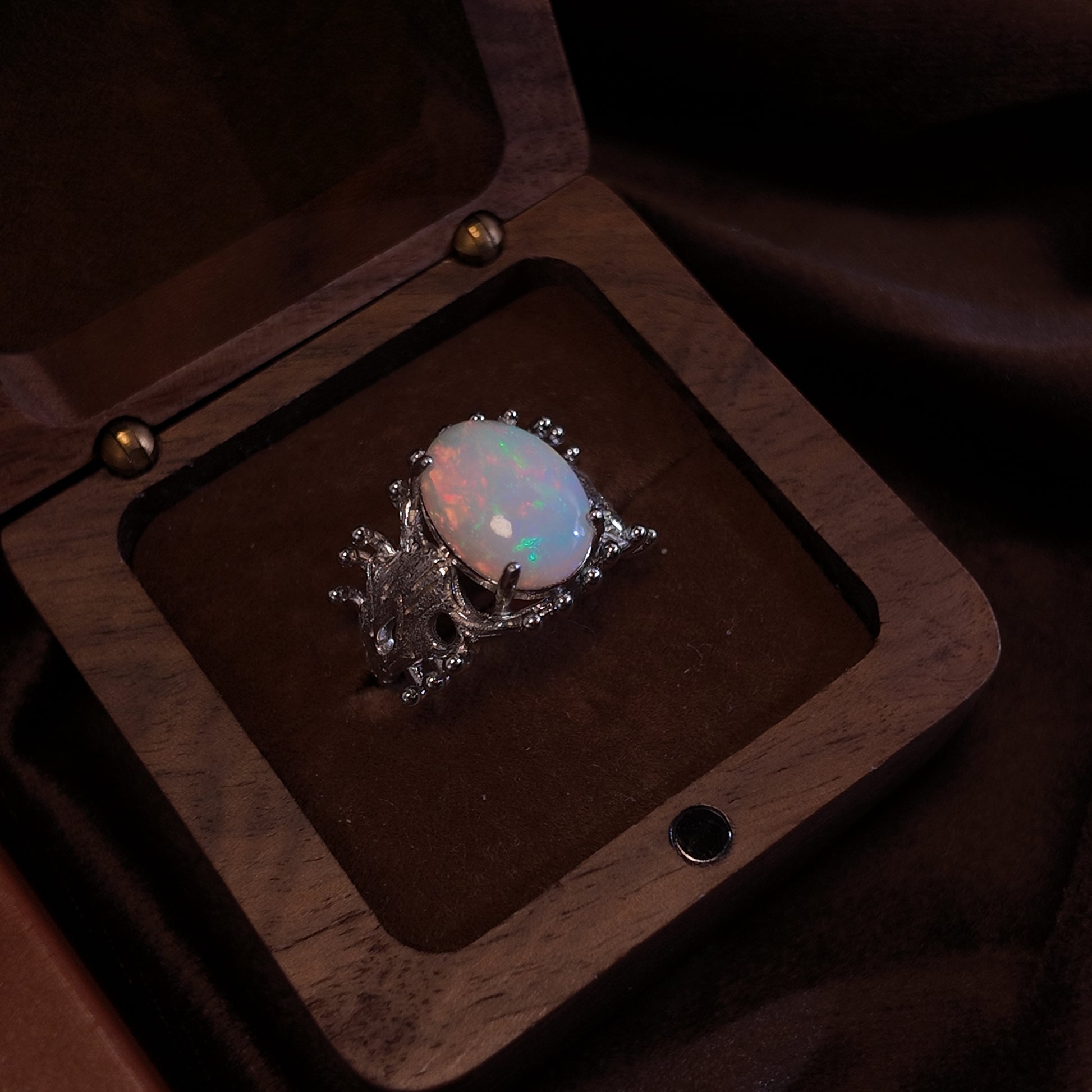 Natural Opal Stone Open Ring S925 Pure Silver Colorful Elliptical Opal Three Dimensional Hollow Ring Body Design Palace Retro