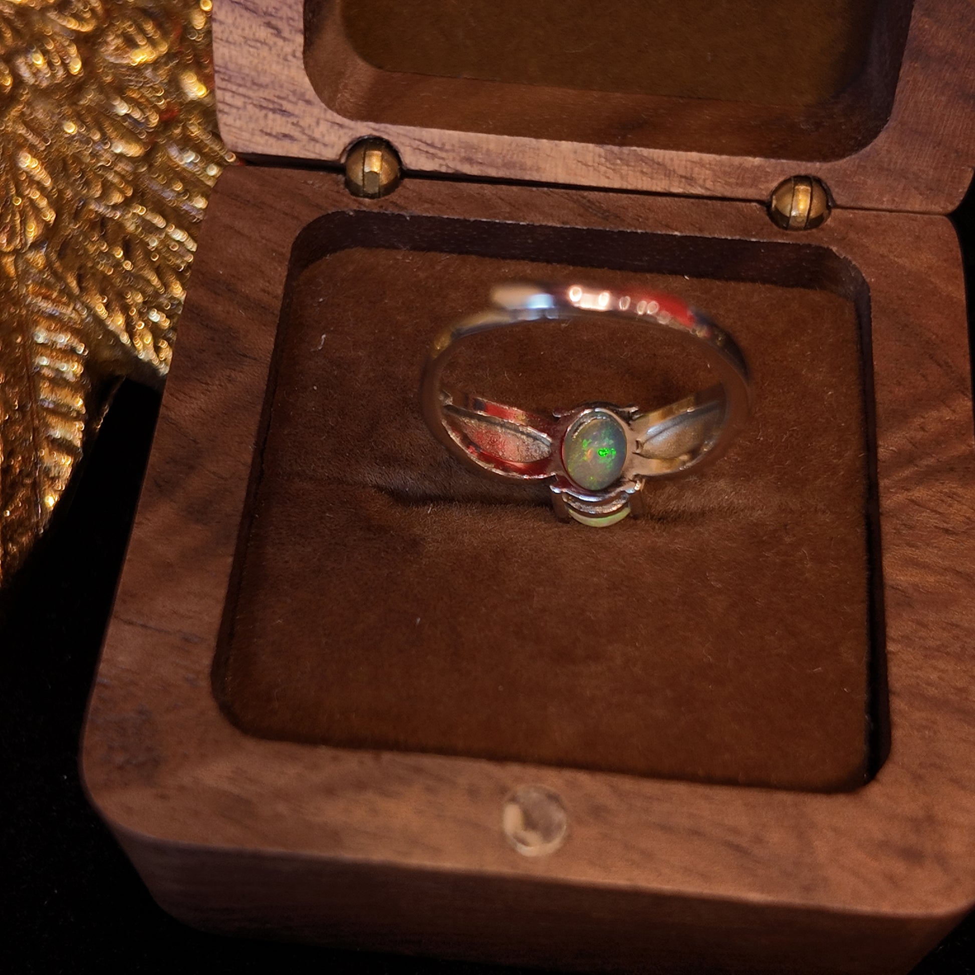 Natural Opal Stone Open Ring S925 Pure Silver Gold Plated Ribbon Rhinestone Inlaid Palace Vintage