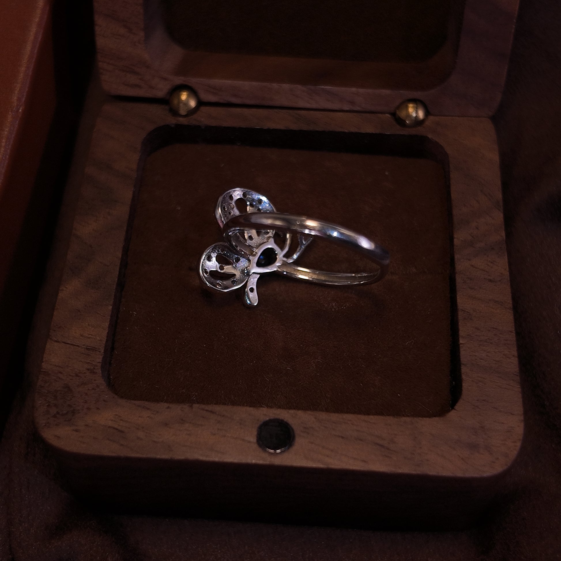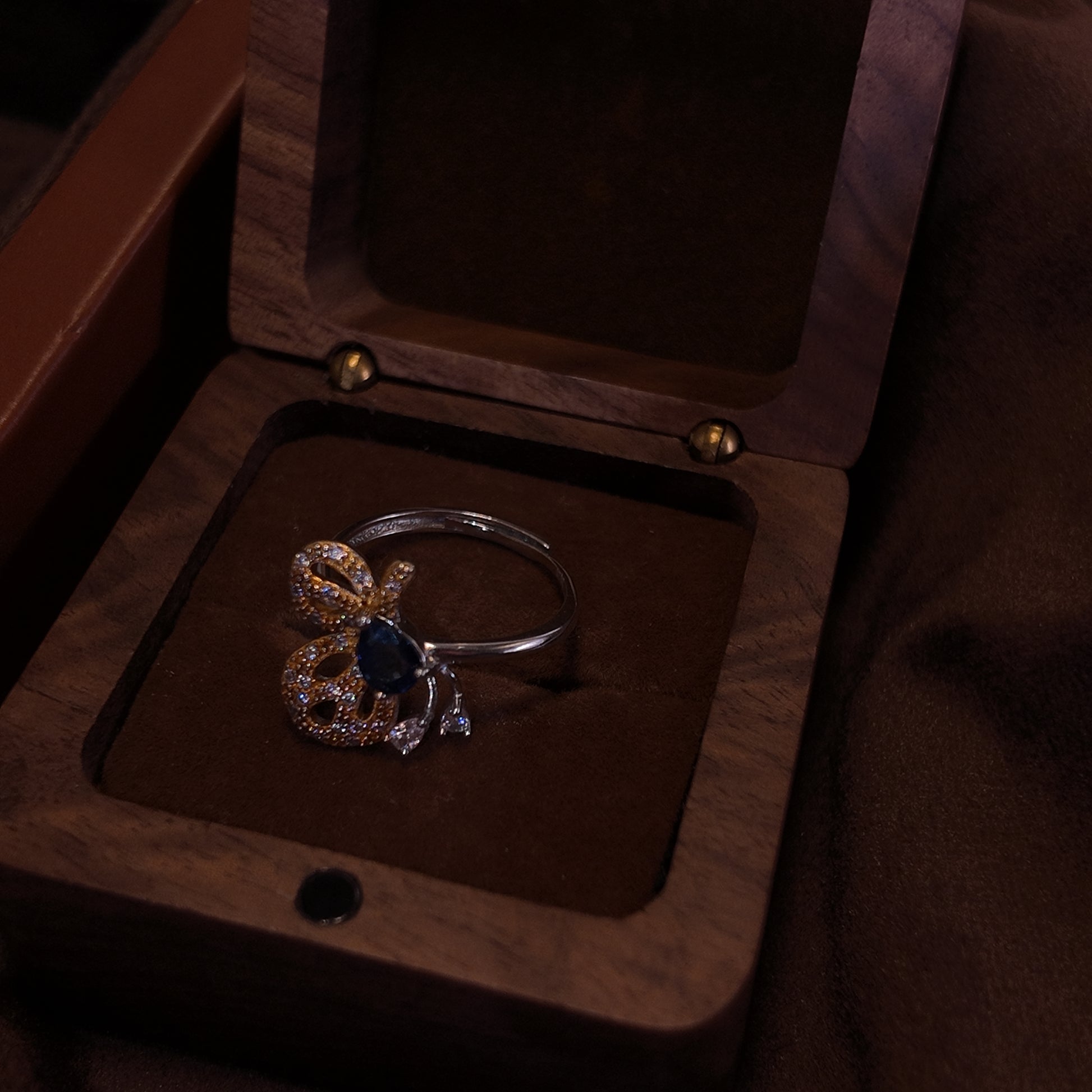 Natural Sapphire Open Ring S925 Pure Silver Butterfly Set with Diamond Three Dimensional Golden Wings Bordered with Palace Vintage
