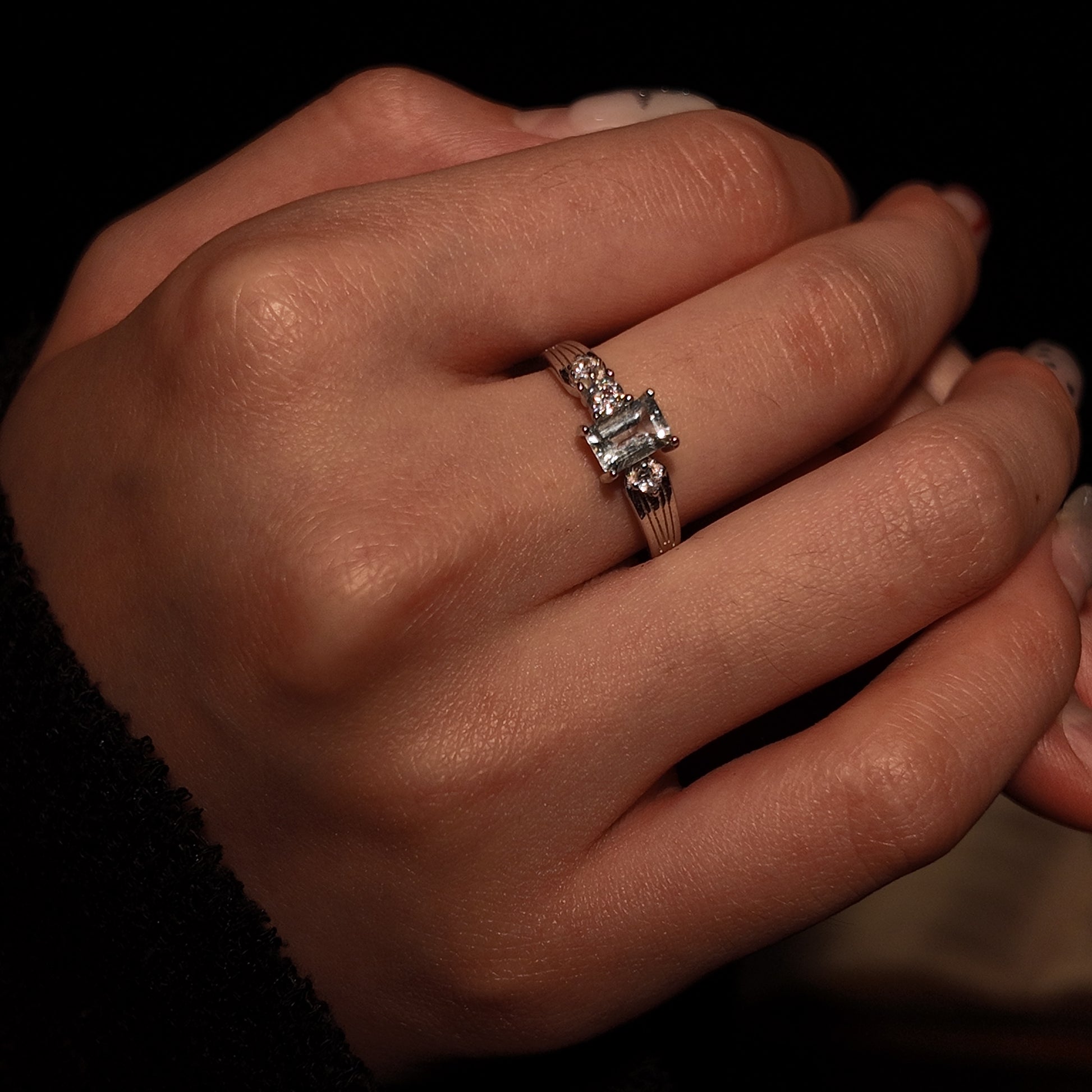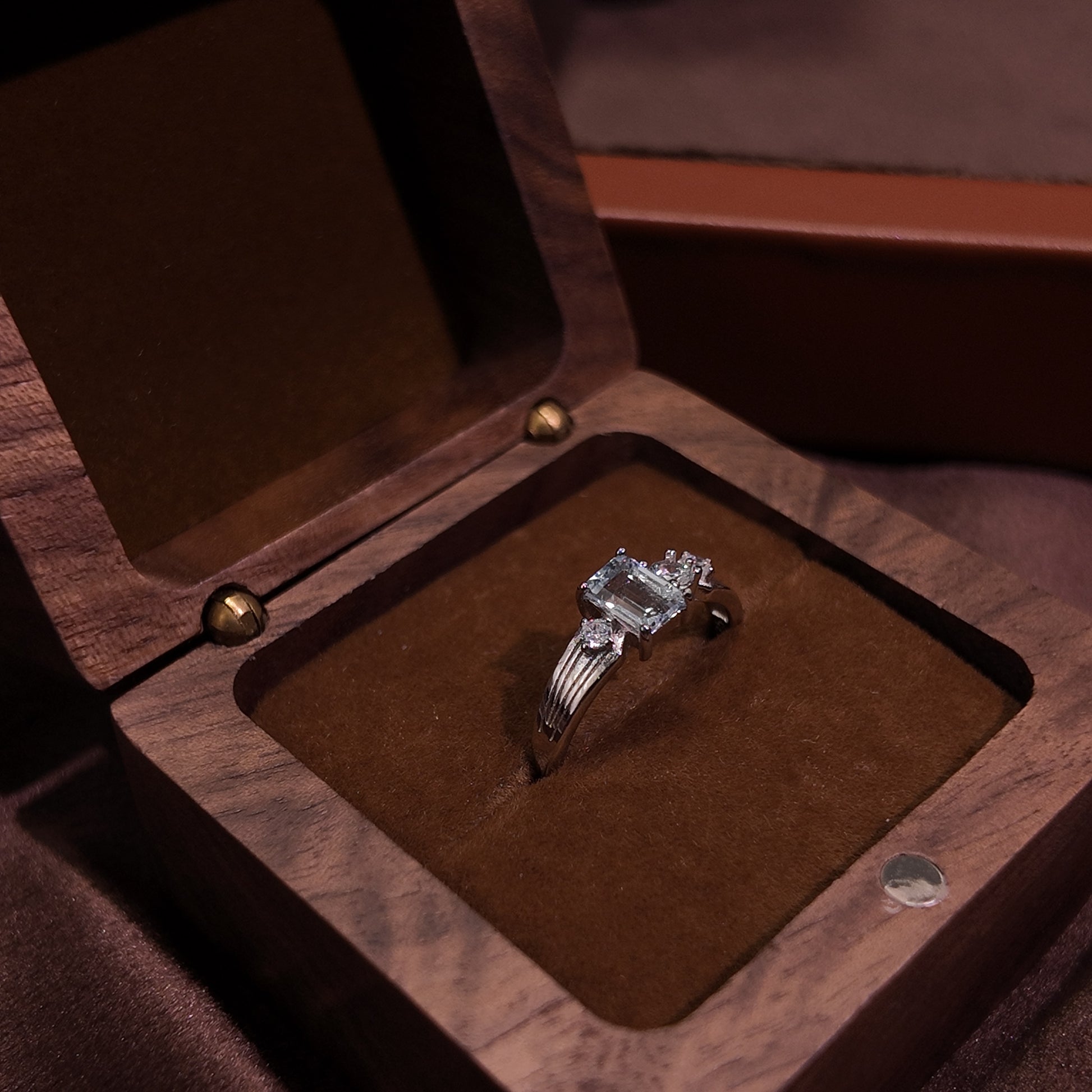 Natural Sea Blue Treasure Ring Open Ring S925 Pure Silver Light Blue Rectangular Diamond Set Palace Retro