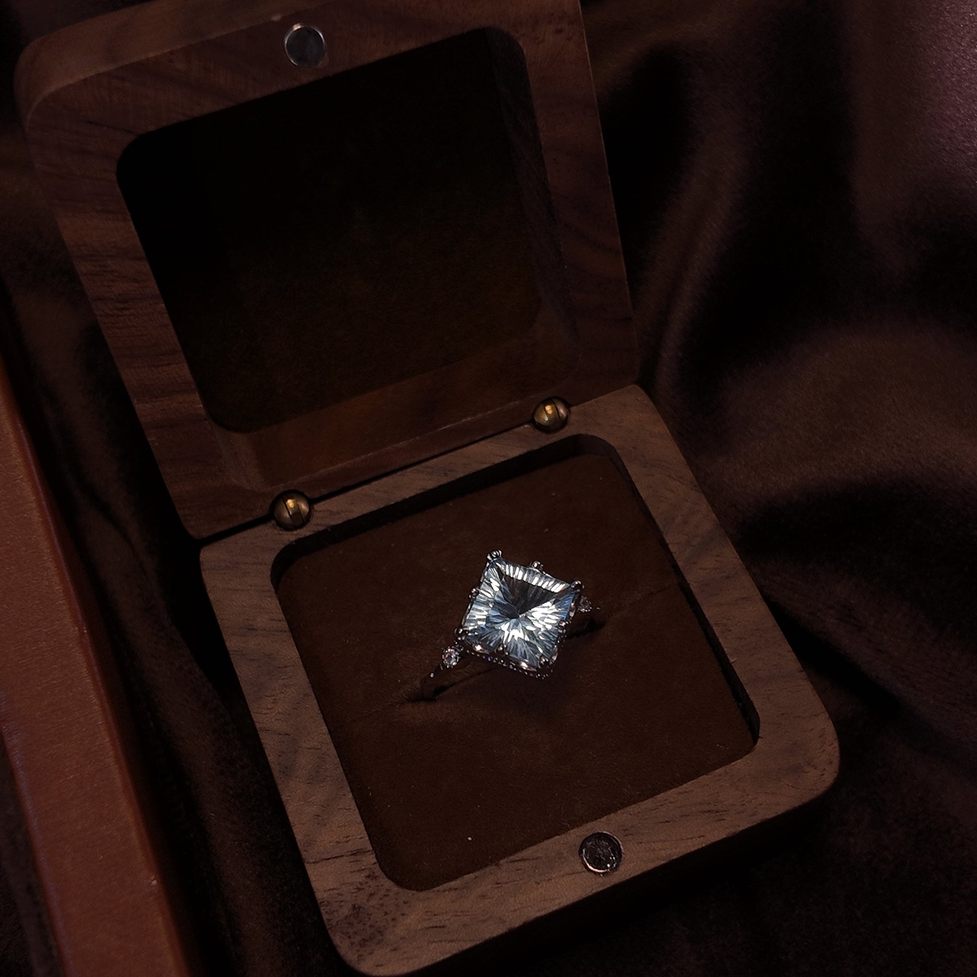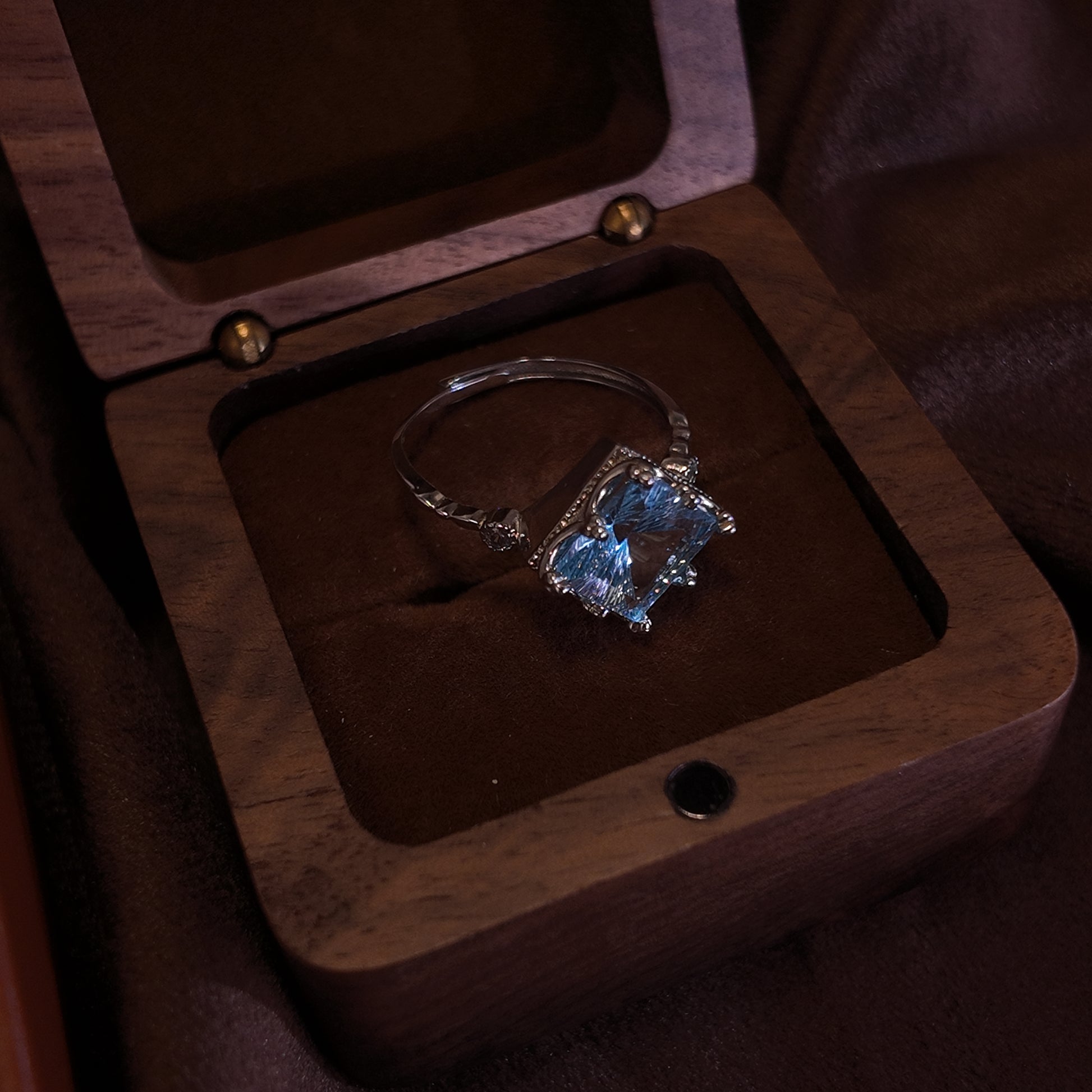 Natural Topaz Open Ring S925 Pure Silver Blue Square Edged Palace Vintage