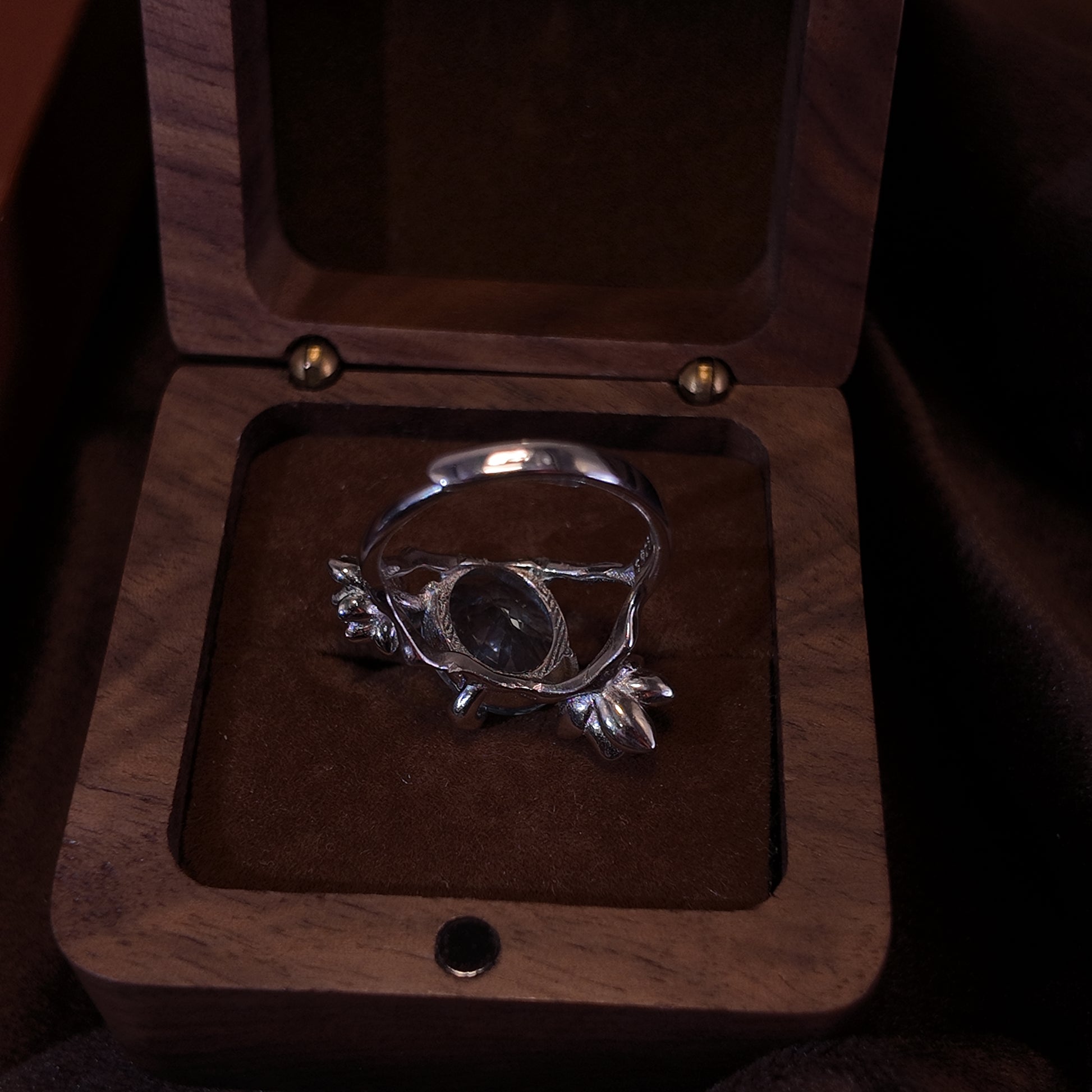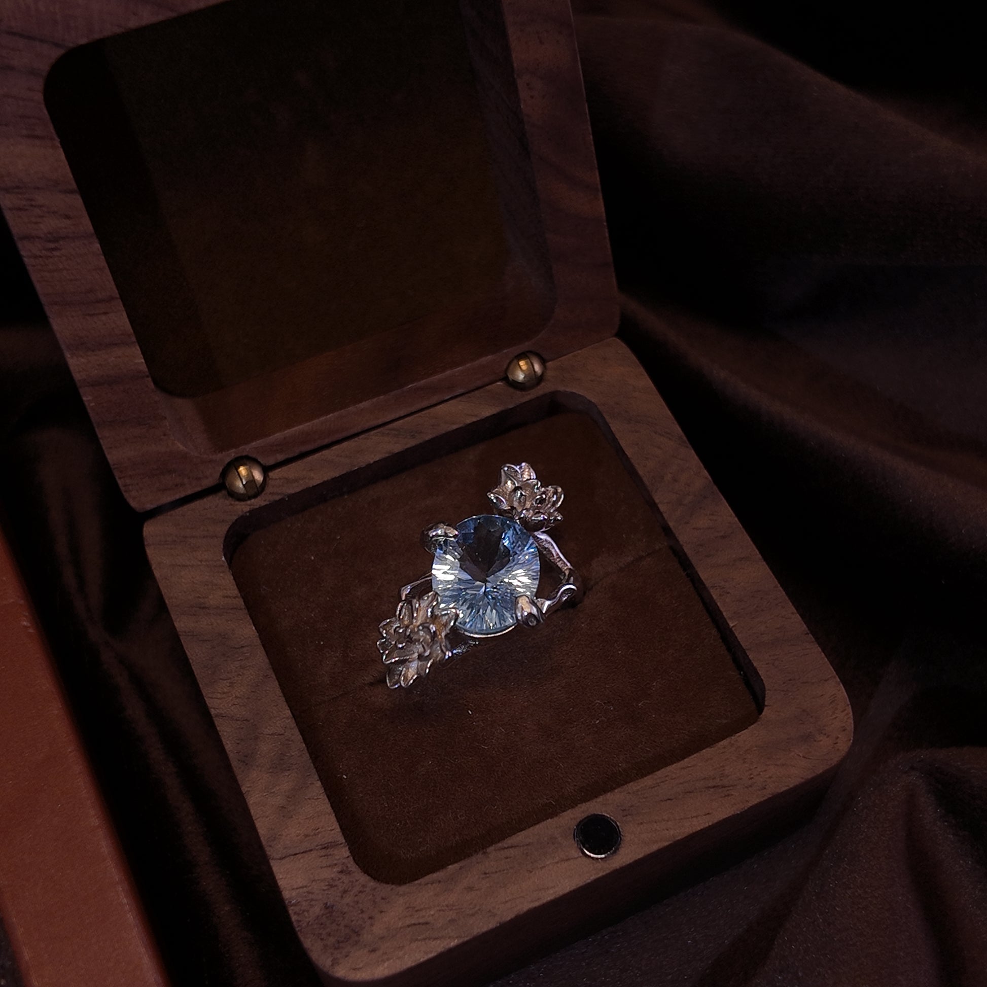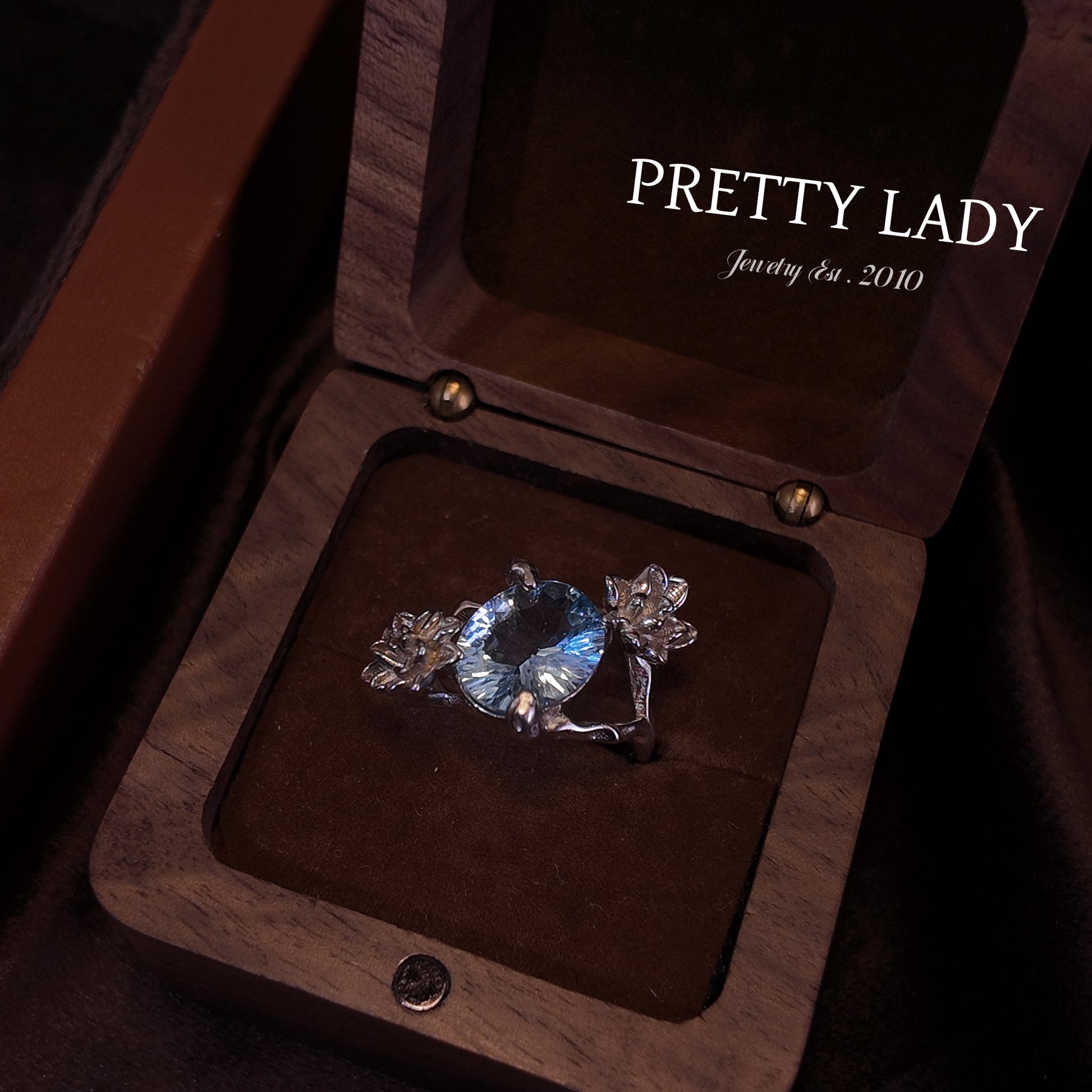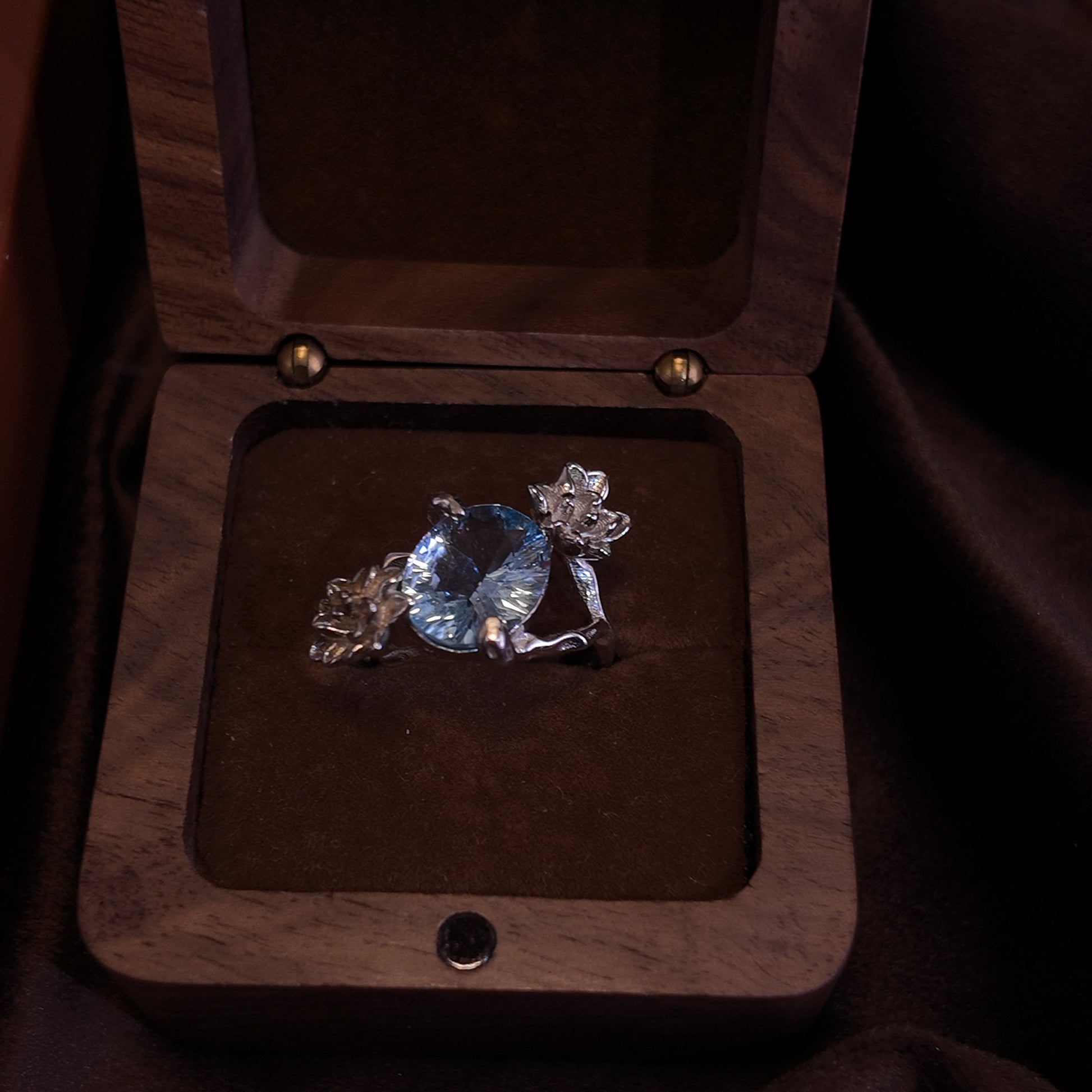 Natural Topaz Open Ring S925 Pure Silver Light Blue Oval Three Dimensional Lotus Surrounding the Palace Retro