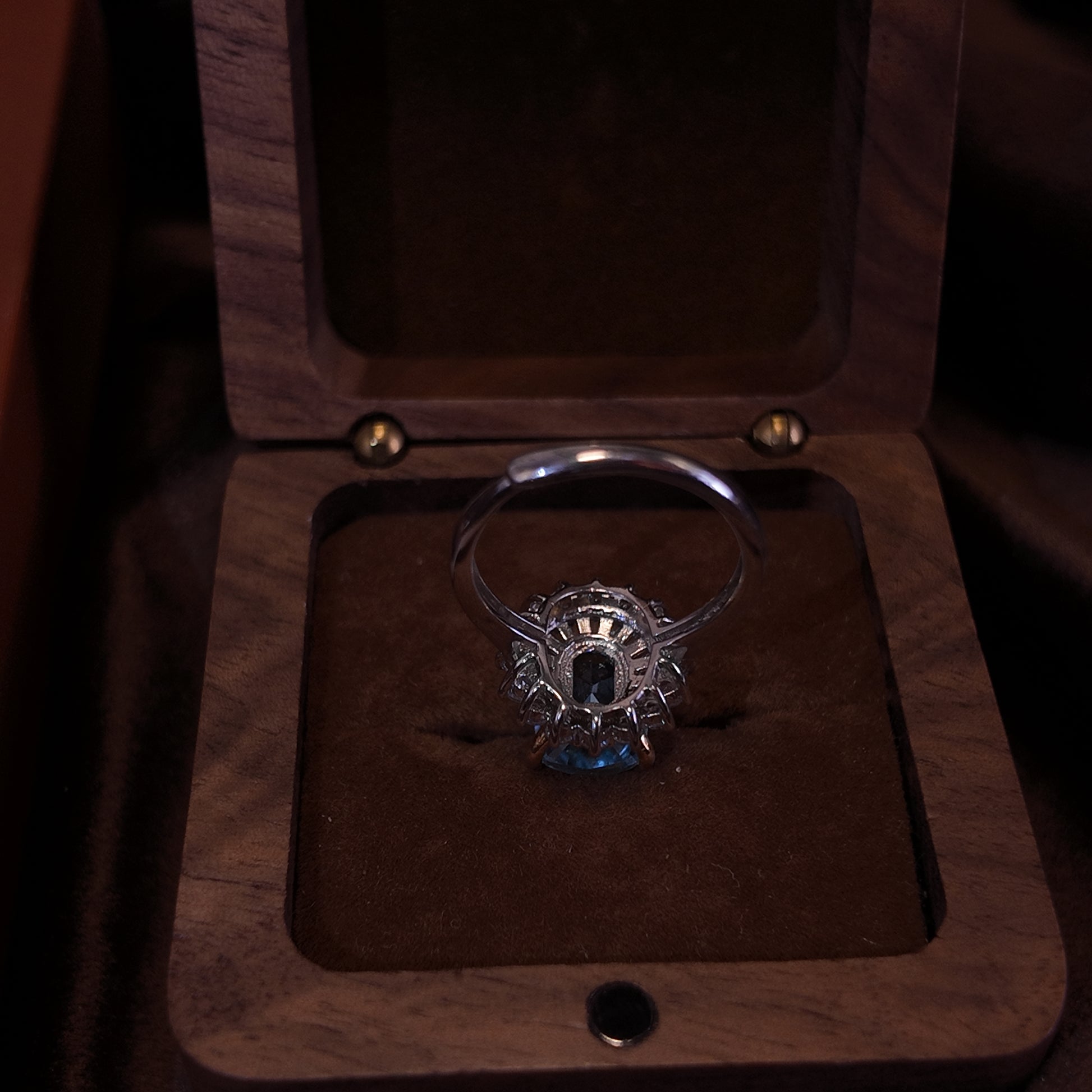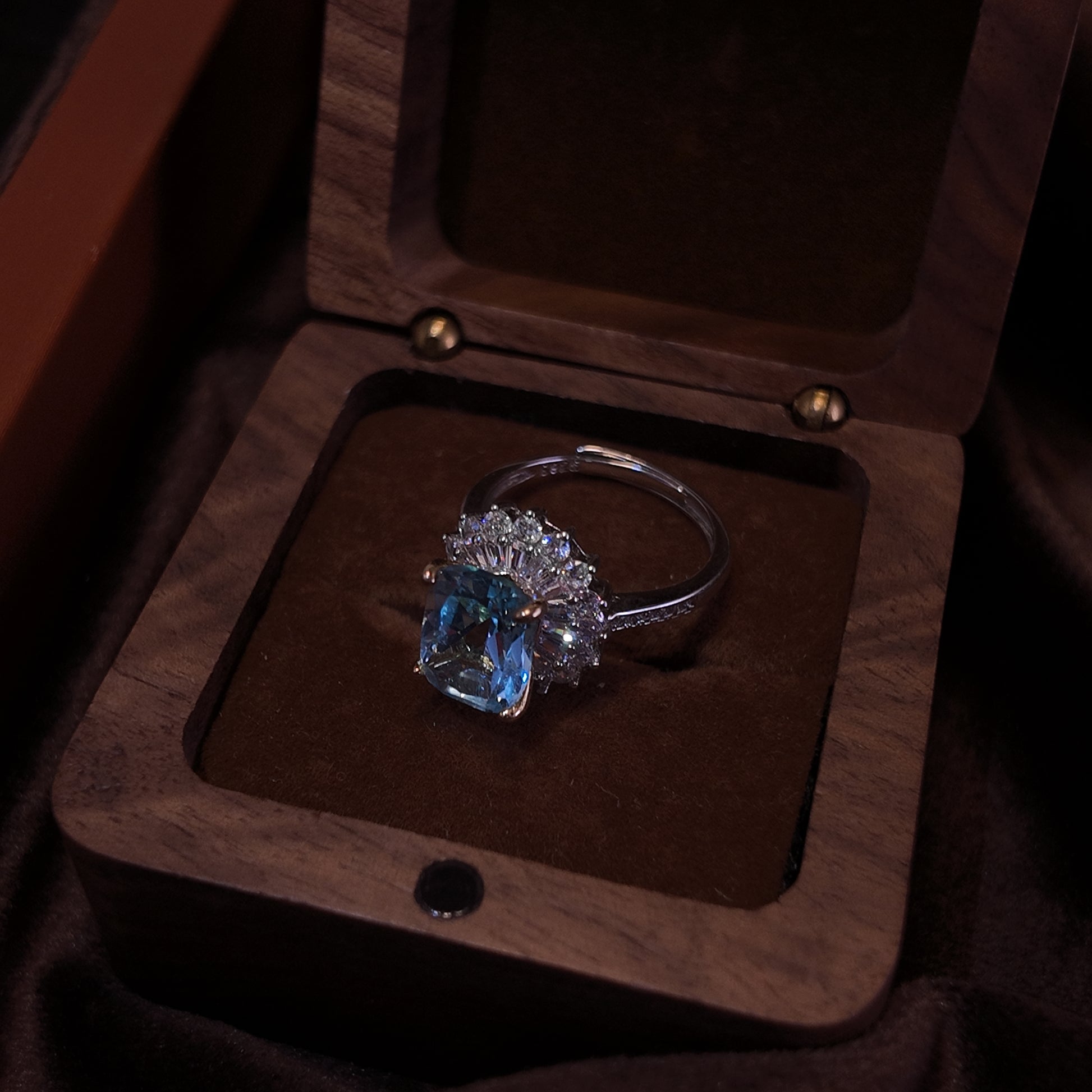 Natural Topaz Open Ring S925 Pure Silver Light Blue Rectangular Starry Surrounding Diamond Set Palace Retro