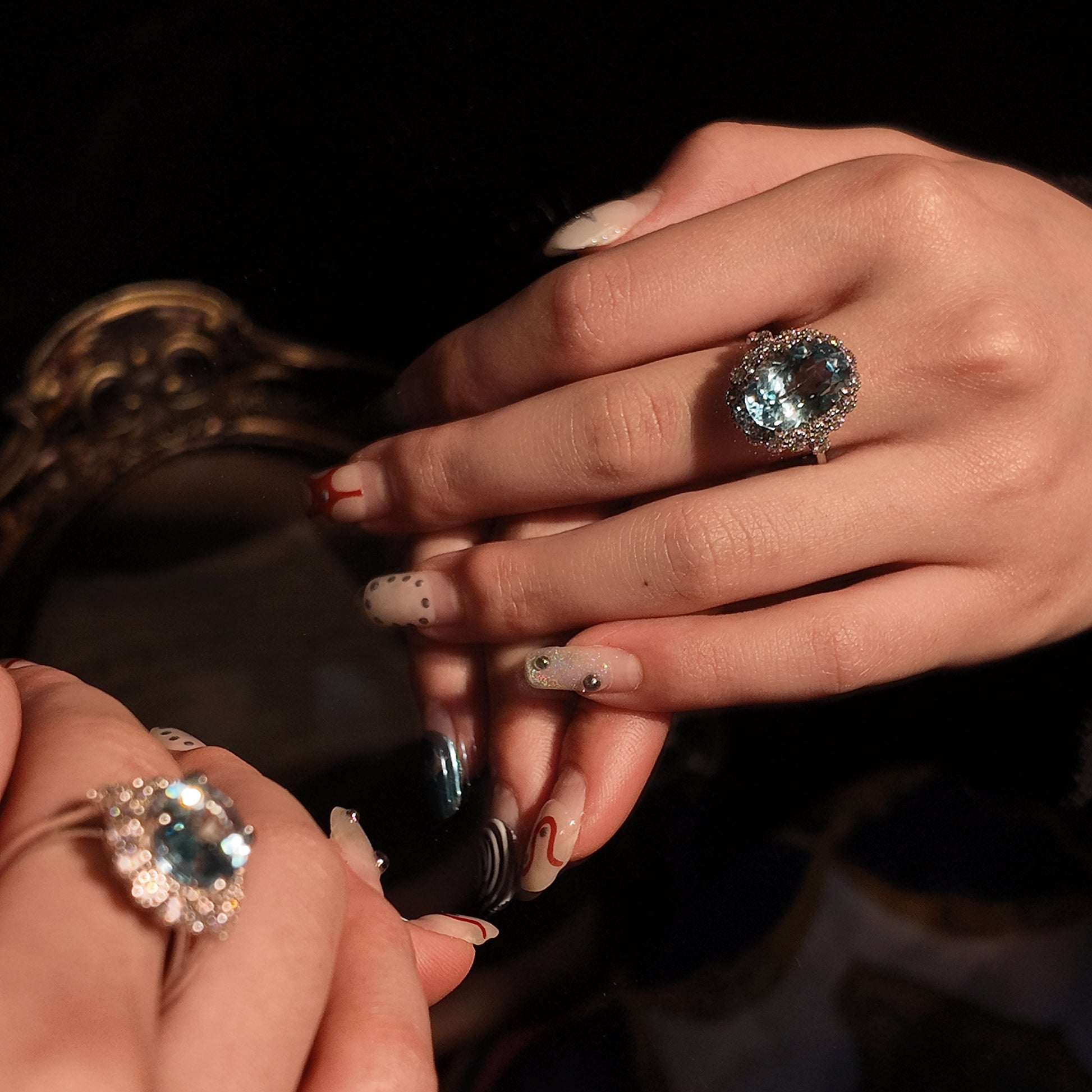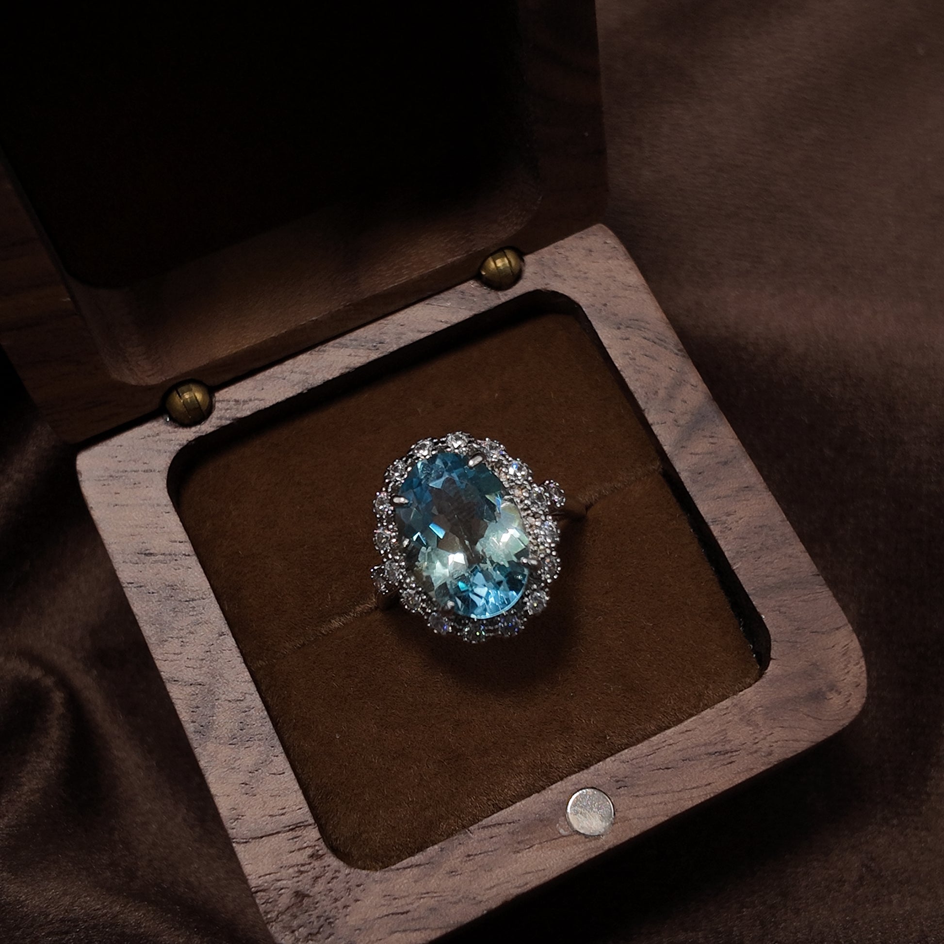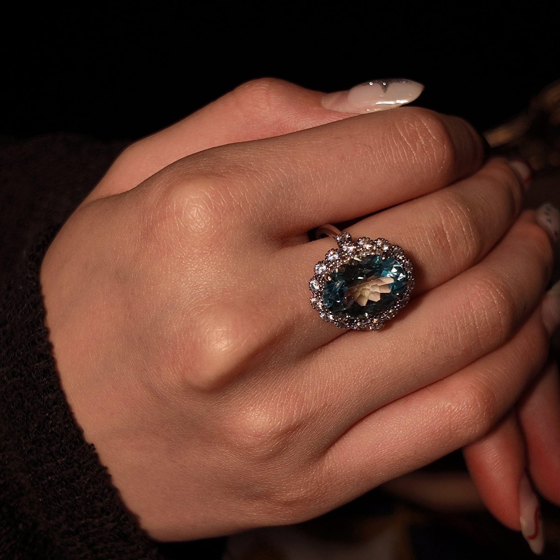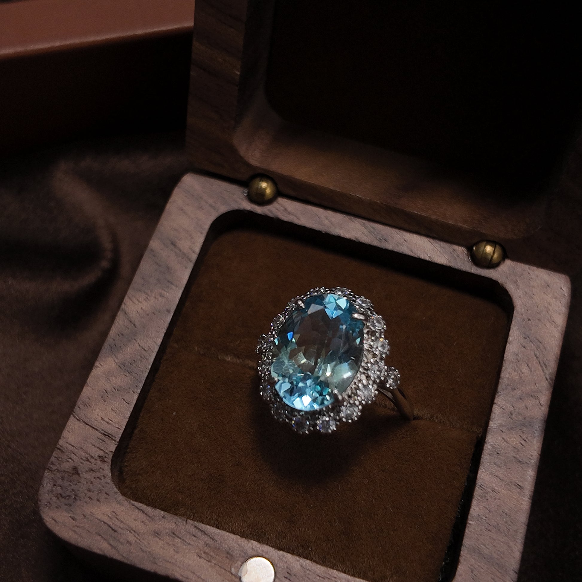 Natural Topaz Open Ring S925 Solid Silver Large Oval Inlaid with Small Exquisite Vintage Design