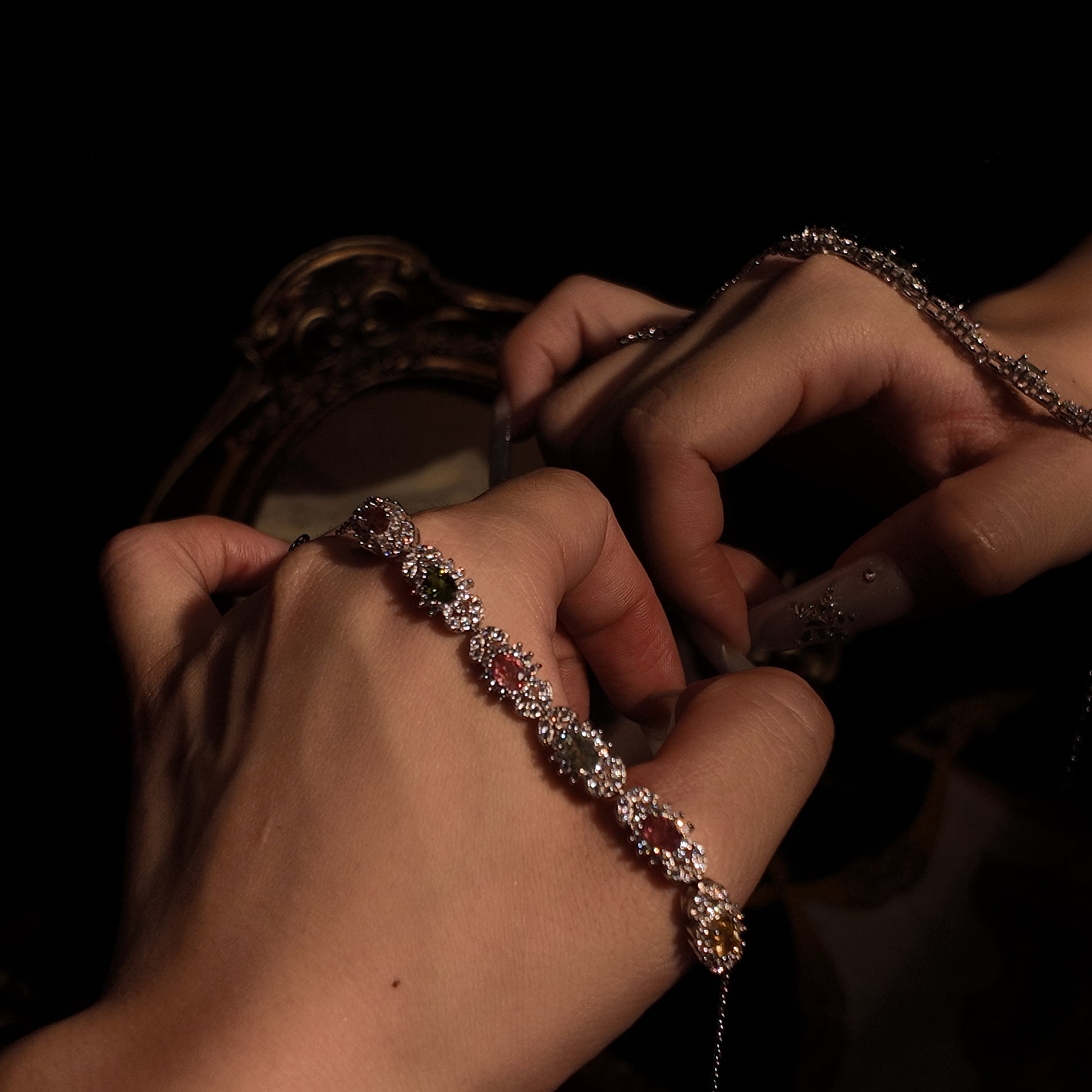 Natural tourmaline colored bracelet S925 pure silver pink green yellow splicing niche exquisite small retro