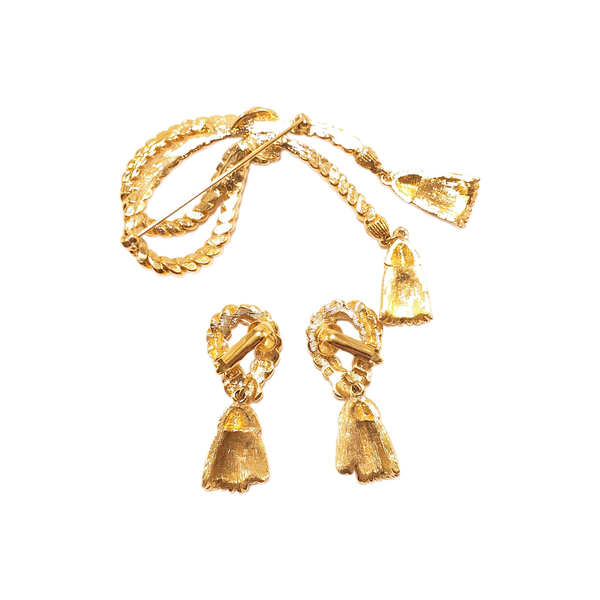 Vintage 90s American knot tassel gold-plated brooch ear clip set court retro style