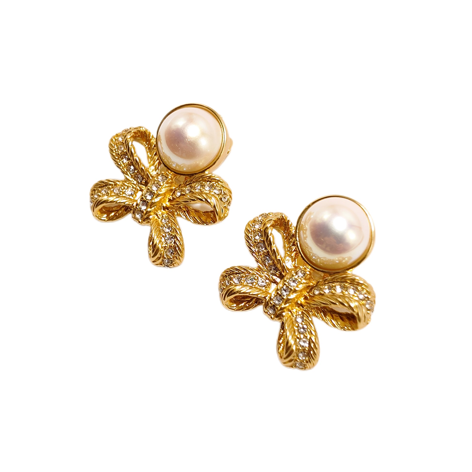 Vintage bow imitation pearl earrings gorgeous palace retro style