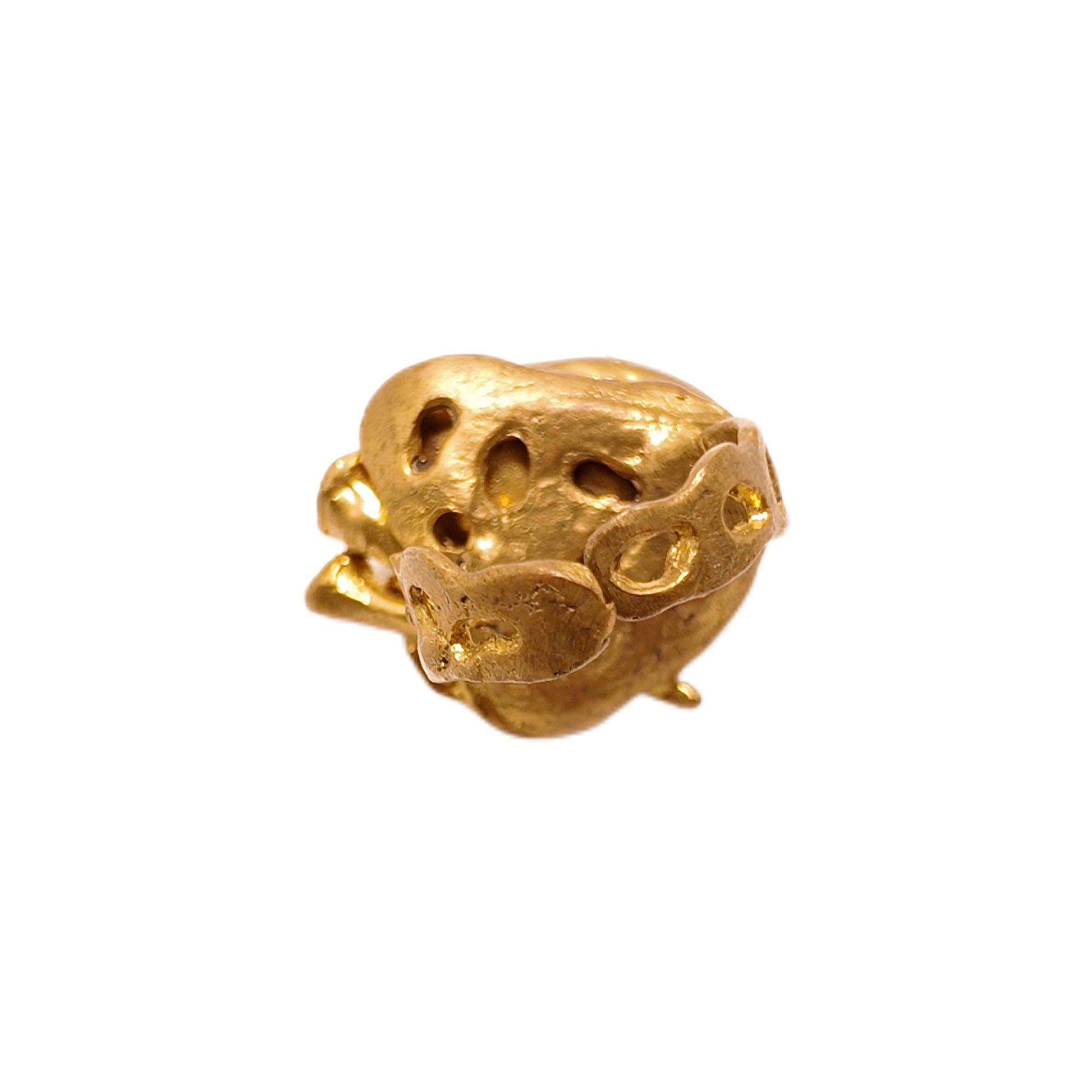 Vintage British 1960s Baroque Pearl Brass Open Ring with Three Dimensional Hollow Pattern Palace Vintage Style