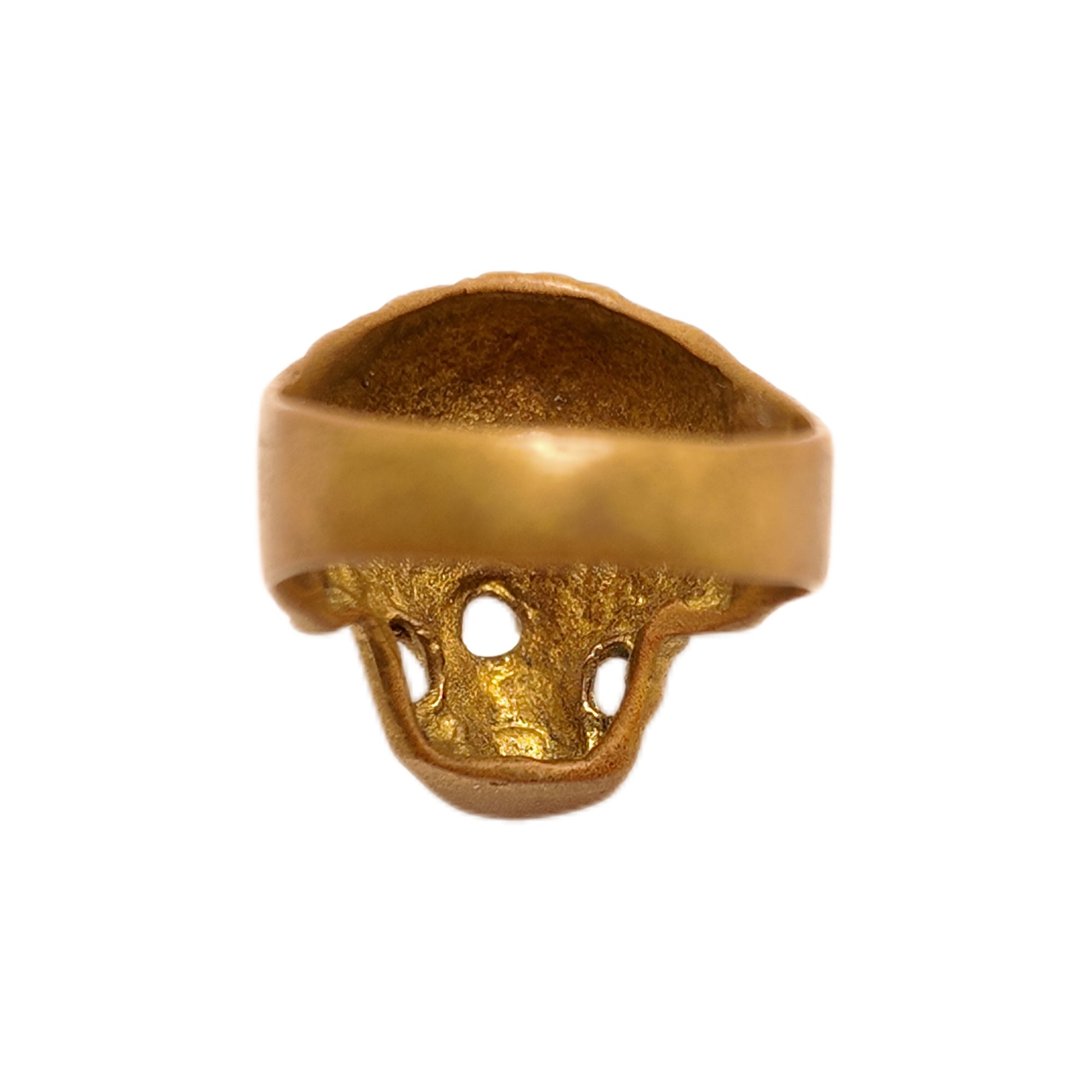 Vintage British 1960s brass ring skull carving pattern court retro style