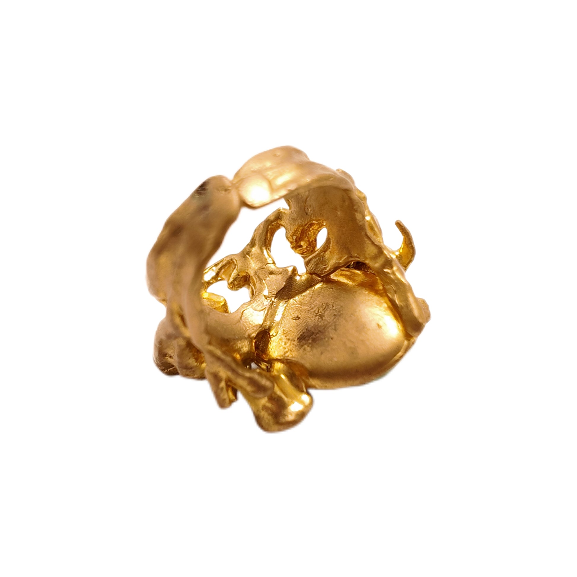 Vintage British 1960s Natural Stone Brass Open Ring with Turtle Three Dimensional Pattern Palace Vintage Style