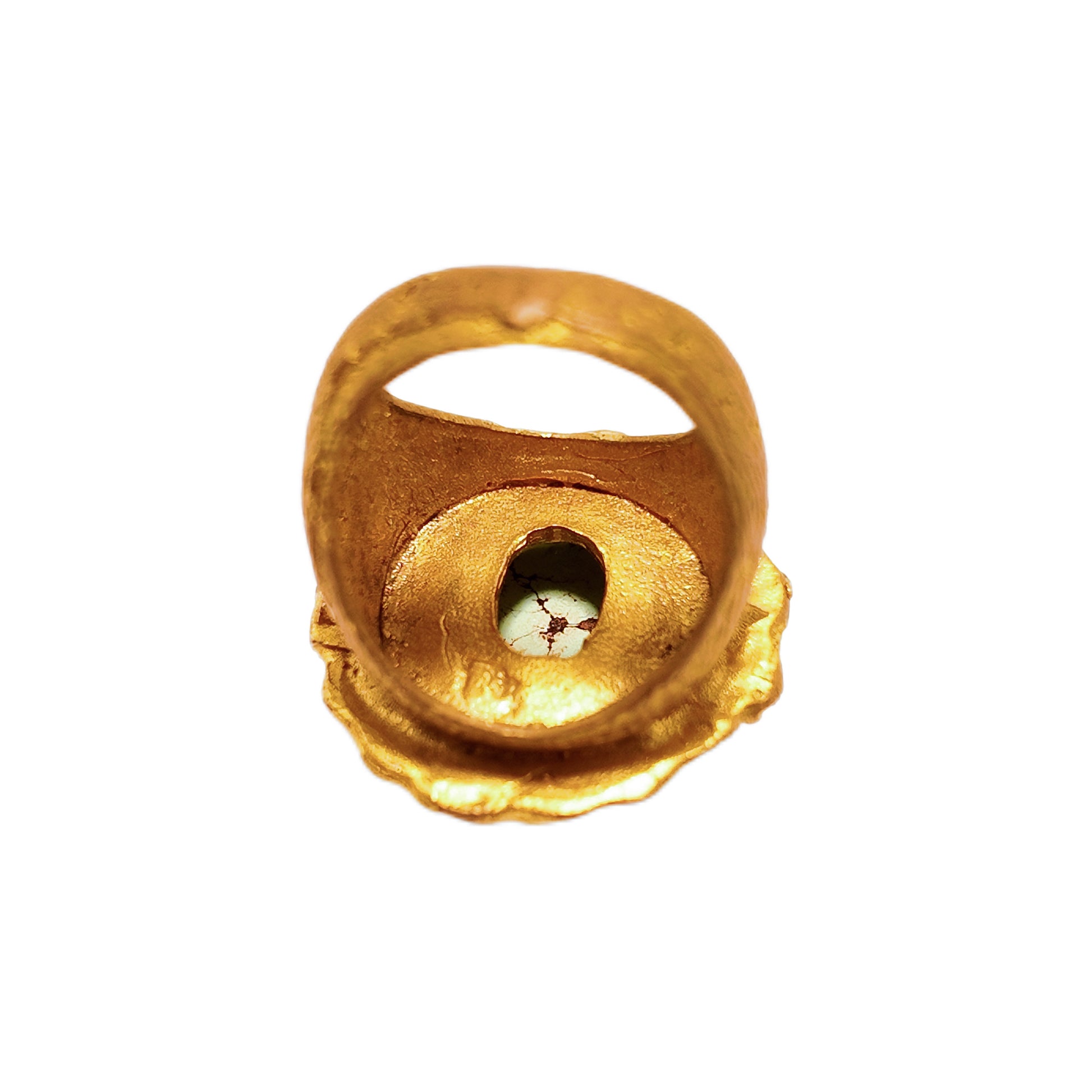 Vintage British 1960s natural turquoise brass ring Baroque pearl inlay court retro style