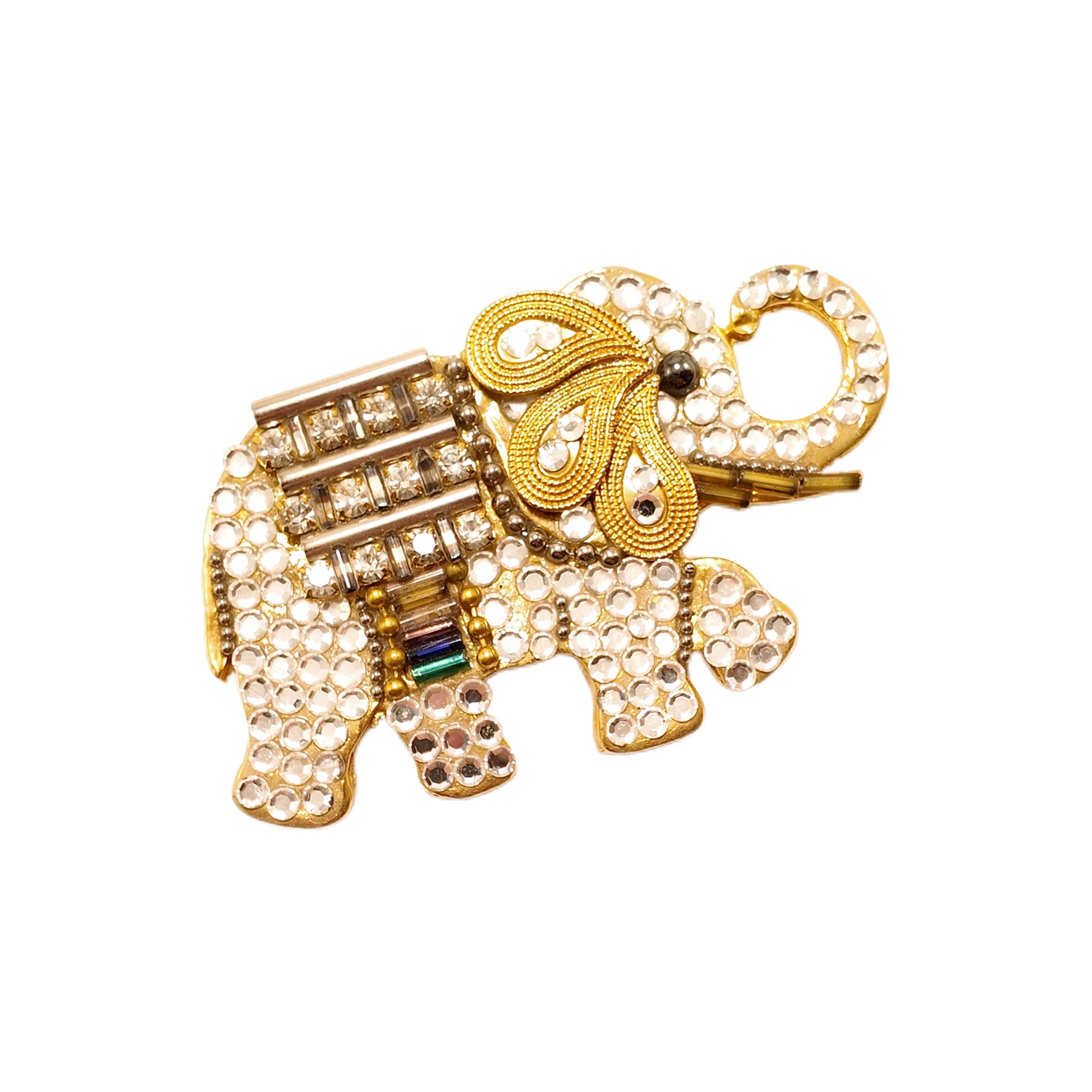 Vintage France 80s Elephant Rhinestone Diamond Set Brooch with Different Styles of Diamond Splicing Design Palace Vintage Style