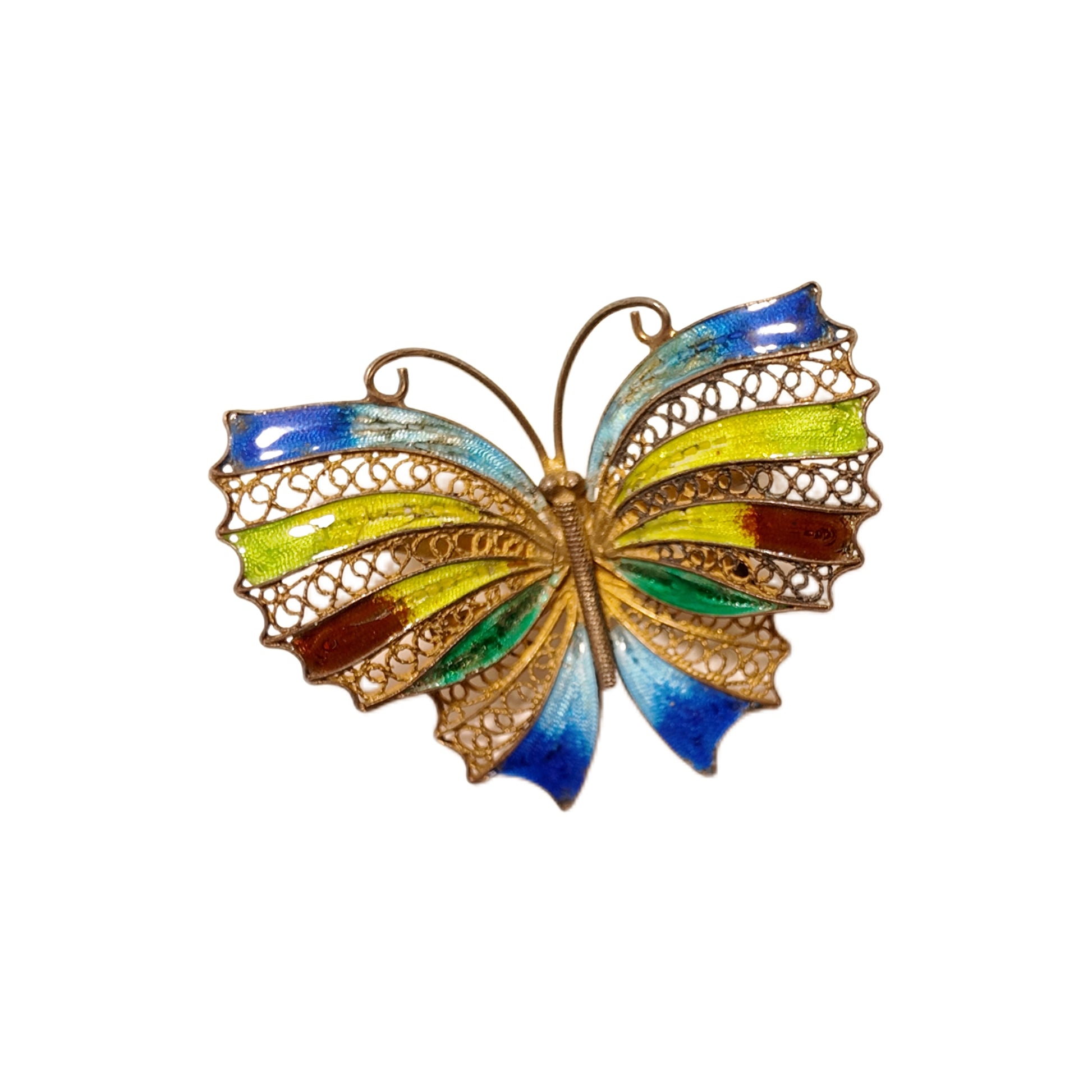 Vintage French 1950s Butterfly Enamel Brooch with Peacock Blue Green Splicing Failed Design Palace Retro Style