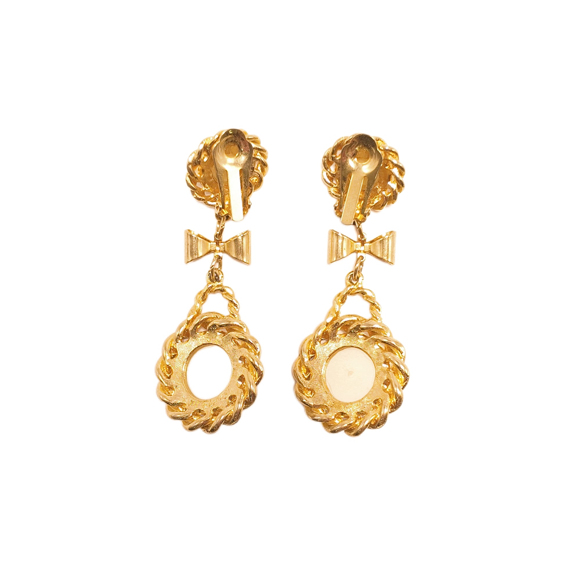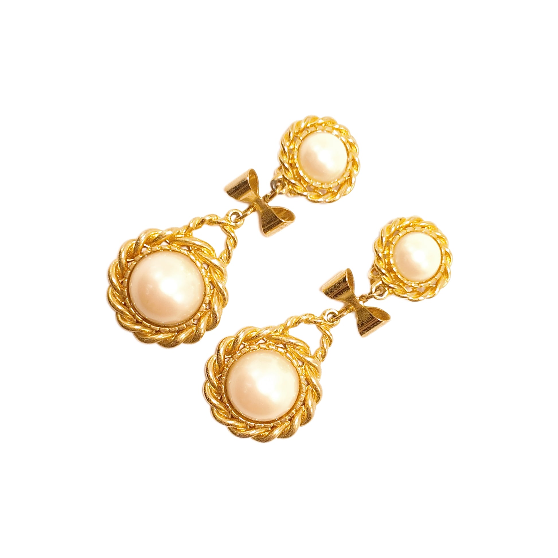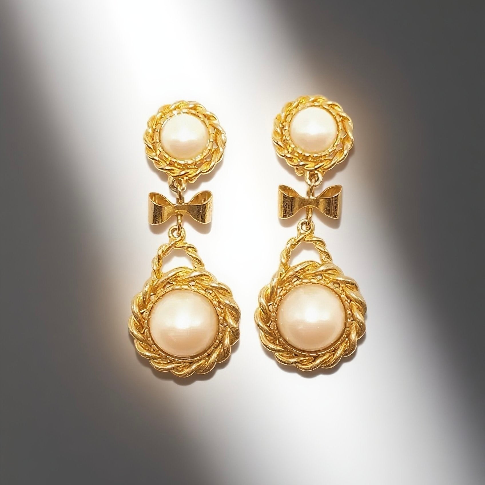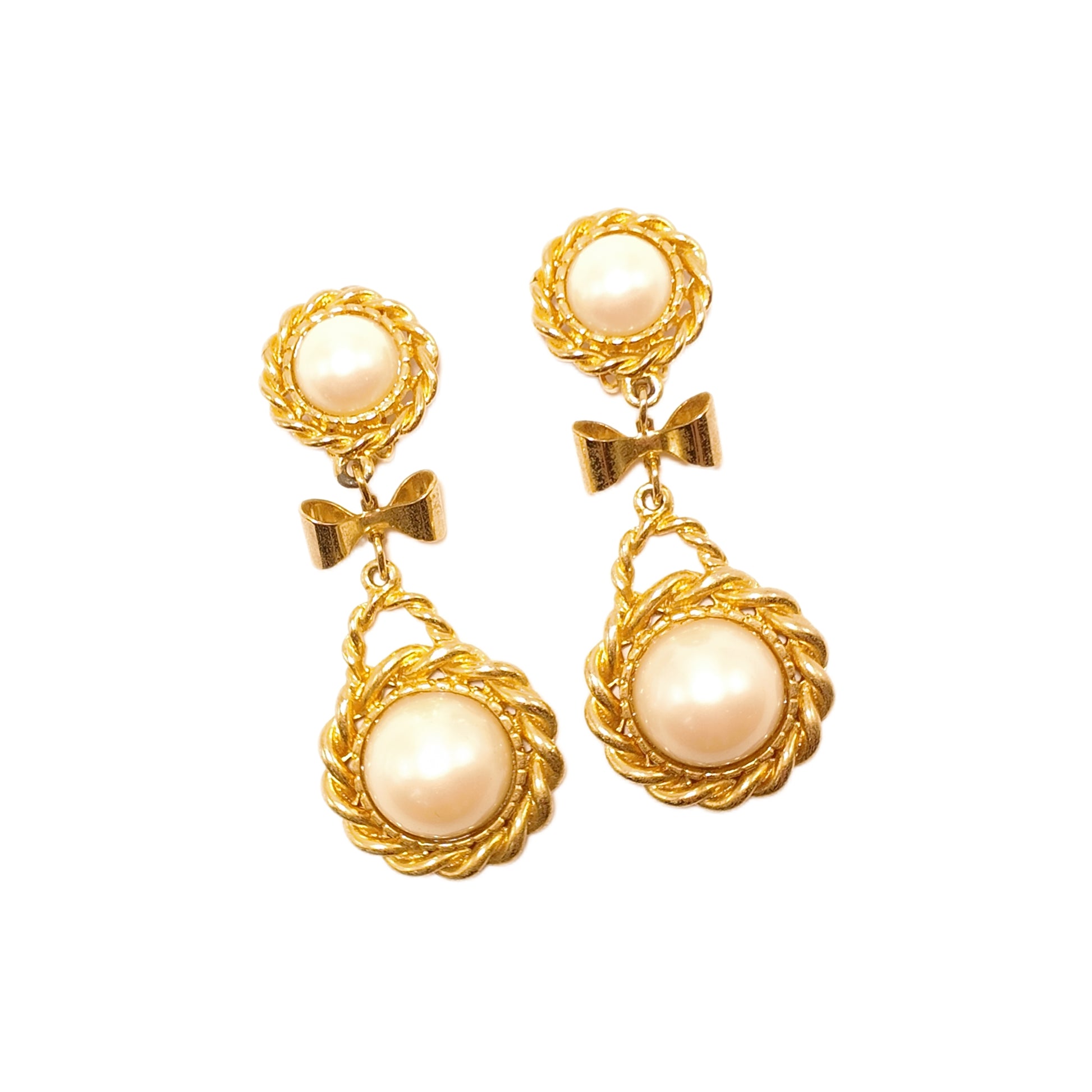 Vintage French 90s bow ear clip white imitation pearl sweeping shoulder court retro style