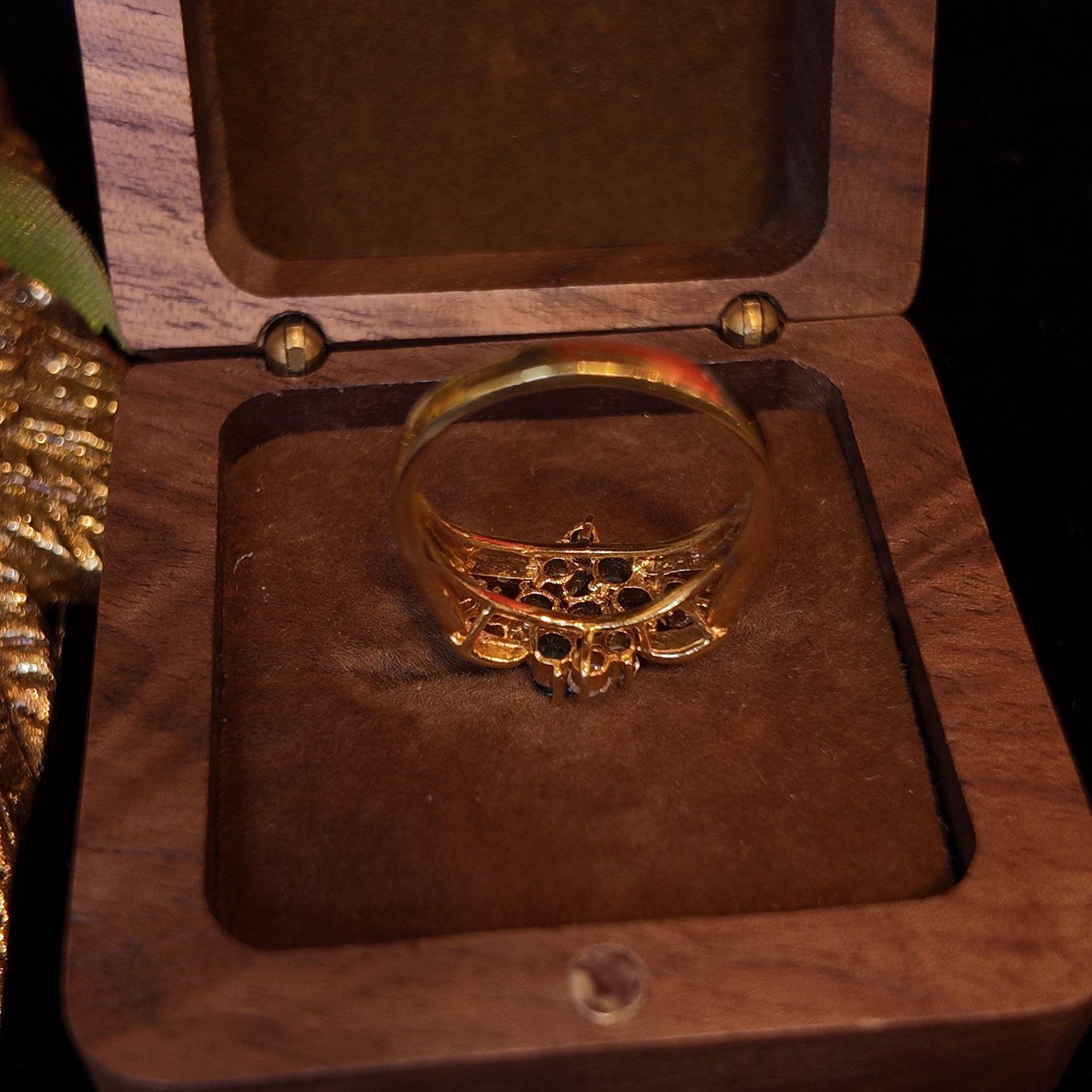 Vintage Rhinestone Ring Gold Plated Blue and White Rhinestone Splicing Set with Palace Vintage